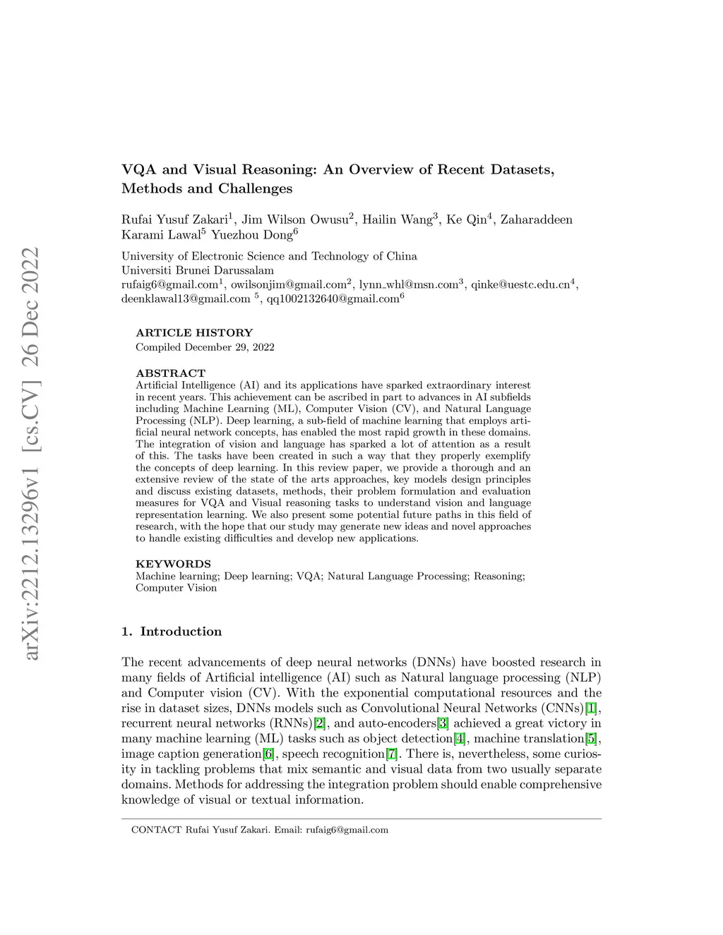Artificial Intelligence (AI) and its applications have sparked extraordinary interest in recent years. This achievement can be ascribed in part to advances in AI subfields including Machine Learning (ML), Computer Vision (CV), and Natural Language Processing (NLP). Deep learning, a sub-field of machine learning that employs artificial neural network concepts, has enabled the most rapid growth in these domains. The integration of vision and language has sparked a lot of attention as a result of this. The tasks have been created in such a way that they properly exemplify the concepts of deep learning. In this review paper, we provide a thorough and an extensive review of the state of the arts approaches, key models design principles and discuss existing datasets, methods, their problem formulation and evaluation measures for VQA and Visual reasoning tasks to understand vision and language representation learning. We also present some potential future paths in this field of research, with the hope that our study may generate new ideas and novel approaches to handle existing difficulties and develop new applications.