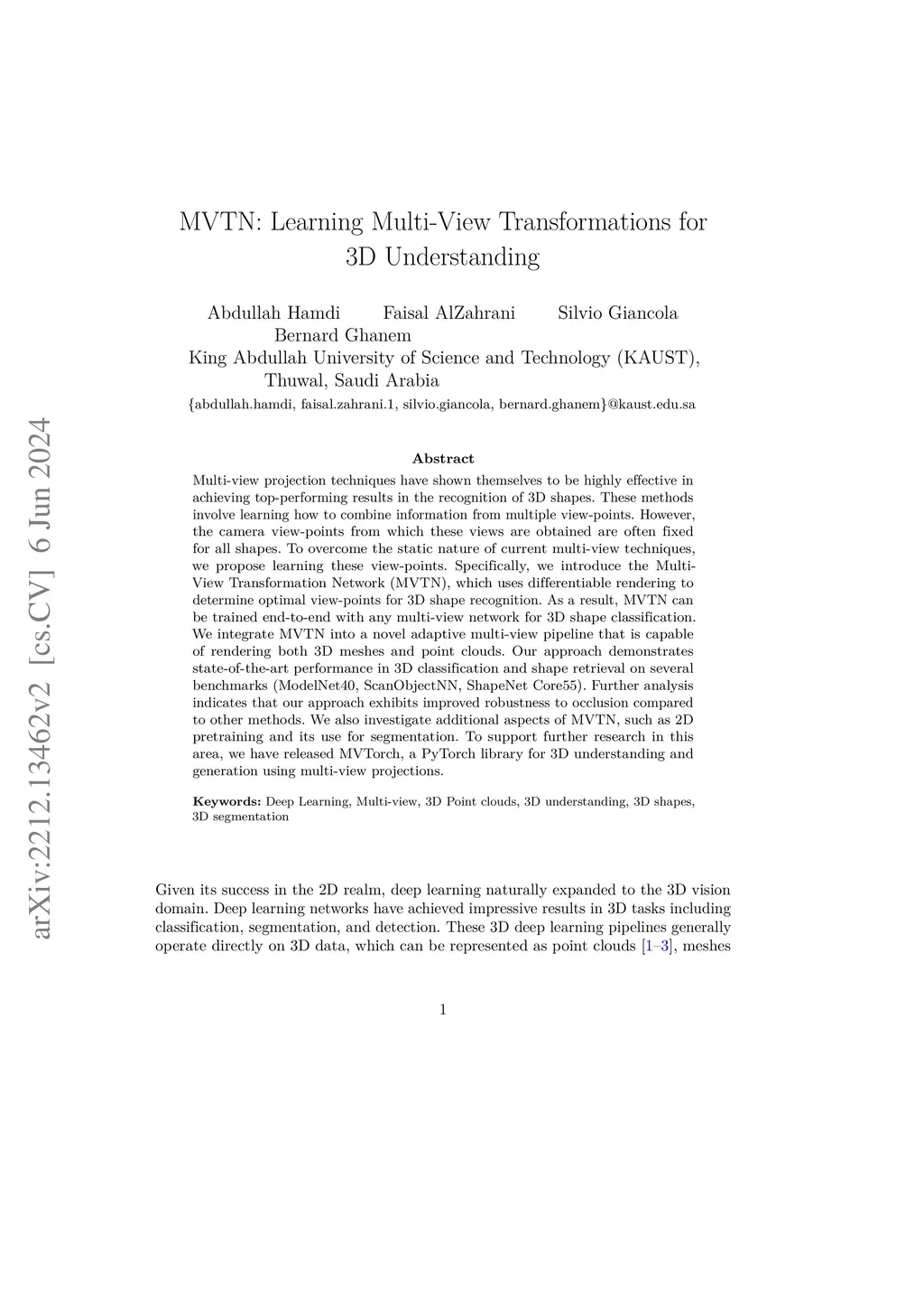 MVTN: Learning Multi-View Transformations for 3D Understanding
