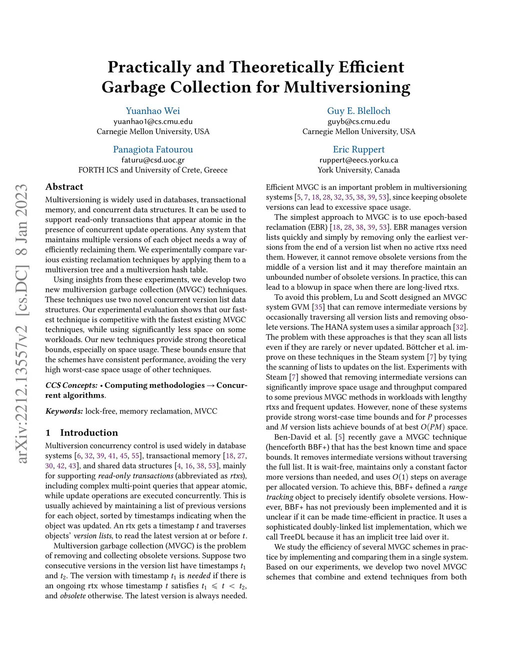 Multiversioning is widely used in databases, transactional memory, and concurrent data structures. It can be used to support read-only transactions that appear atomic in the presence of concurrent update operations. Any system that maintains multiple versions of each object needs a way of efficiently reclaiming them. We experimentally compare various existing reclamation techniques by applying them to a multiversion tree and a multiversion hash table. Using insights from these experiments, we develop two new multiversion garbage collection (MVGC) techniques. These techniques use two novel concurrent version list data structures. Our experimental evaluation shows that our fastest technique is competitive with the fastest existing MVGC techniques, while using significantly less space on some workloads. Our new techniques provide strong theoretical bounds, especially on space usage. These bounds ensure that the schemes have consistent performance, avoiding the very high worst-case space usage of other techniques.