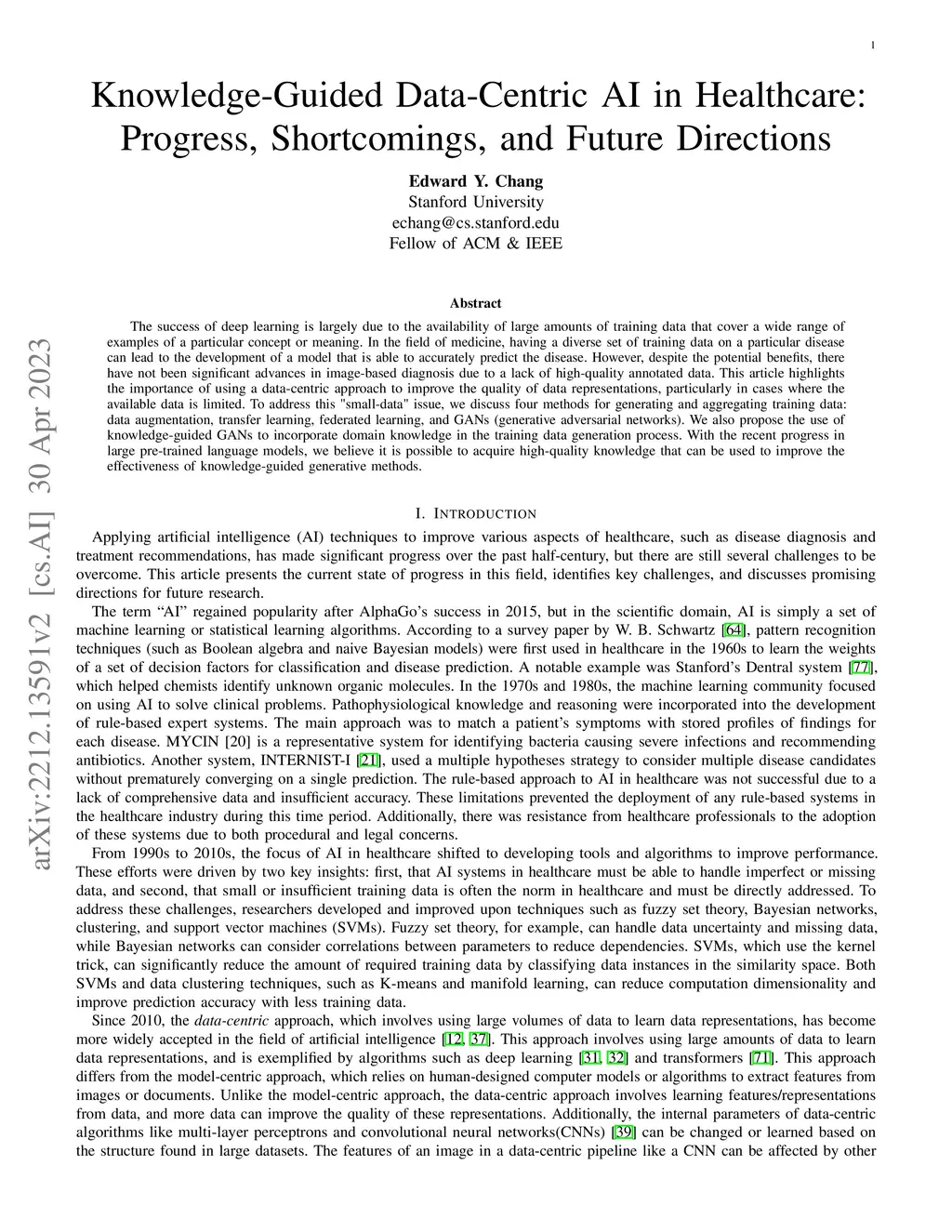 The success of deep learning is largely due to the availability of large amounts of training data that cover a wide range of examples of a particular concept or meaning. In the field of medicine, having a diverse set of training data on a particular disease can lead to the development of a model that is able to accurately predict the disease. However, despite the potential benefits, there have not been significant advances in image-based diagnosis due to a lack of high-quality annotated data. This article highlights the importance of using a data-centric approach to improve the quality of data representations, particularly in cases where the available data is limited. To address this "small-data" issue, we discuss four methods for generating and aggregating training data: data augmentation, transfer learning, federated learning, and GANs (generative adversarial networks). We also propose the use of knowledge-guided GANs to incorporate domain knowledge in the training data generation process. With the recent progress in large pre-trained language models, we believe it is possible to acquire high-quality knowledge that can be used to improve the effectiveness of knowledge-guided generative methods.