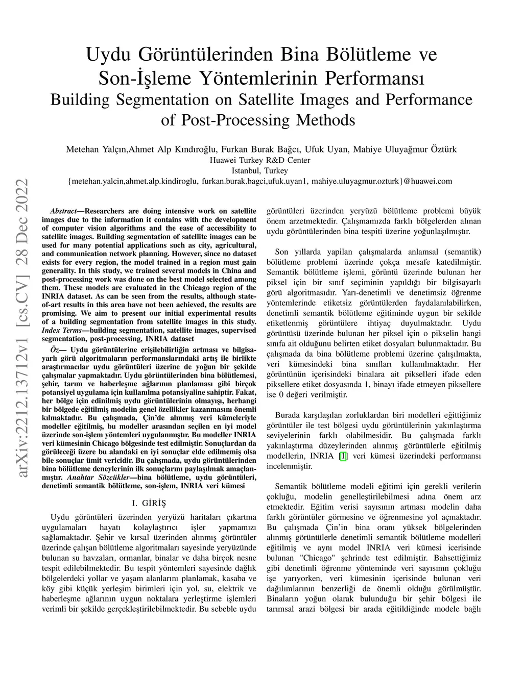 Researchers are doing intensive work on satellite images due to the information it contains with the development of computer vision algorithms and the ease of accessibility to satellite images. Building segmentation of satellite images can be used for many potential applications such as city, agricultural, and communication network planning. However, since no dataset exists for every region, the model trained in a region must gain generality. In this study, we trained several models in China and post-processing work was done on the best model selected among them. These models are evaluated in the Chicago region of the INRIA dataset. As can be seen from the results, although state-of-art results in this area have not been achieved, the results are promising. We aim to present our initial experimental results of a building segmentation from satellite images in this study.