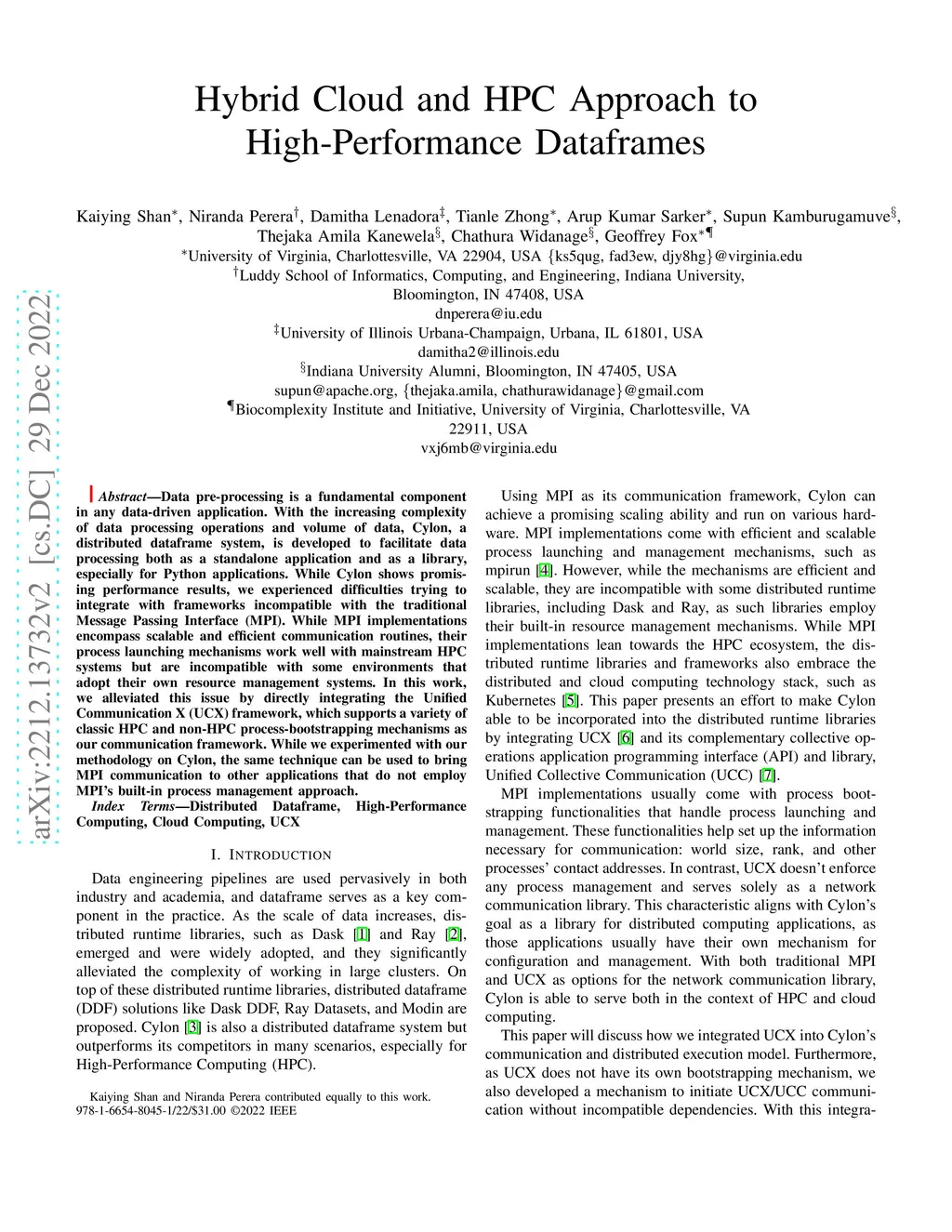 Hybrid Cloud and HPC Approach to High-Performance Dataframes