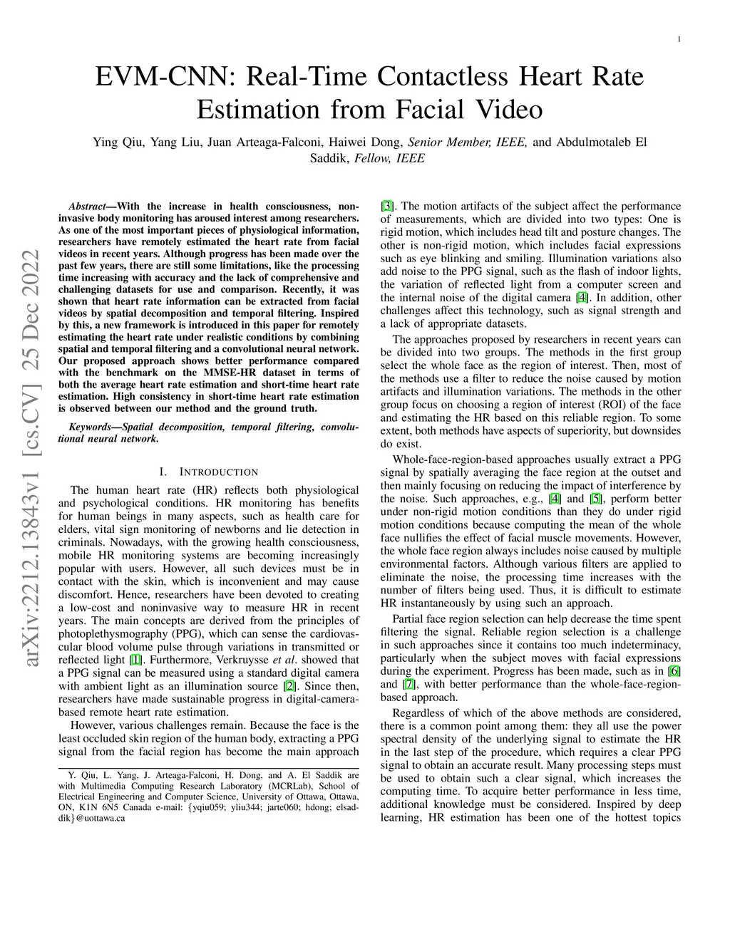 EVM-CNN: Real-Time Contactless Heart Rate Estimation from Facial Video