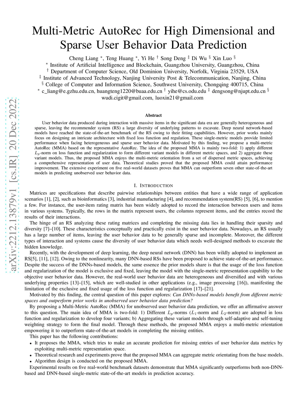 Multi-Metric AutoRec for High Dimensional and Sparse User Behavior Data