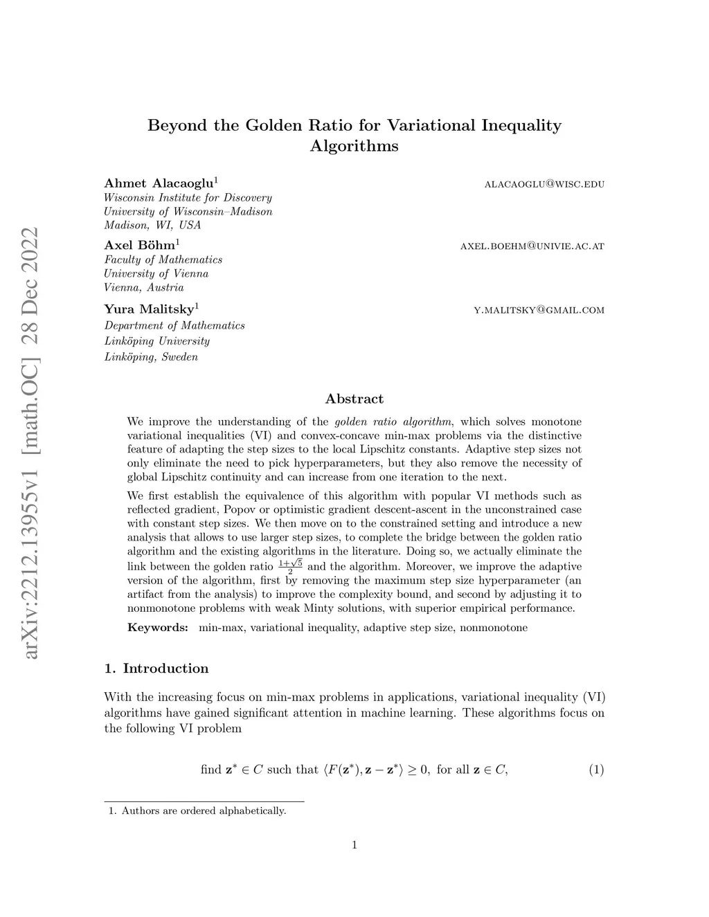 We improve the understanding of the , which solves monotone variational inequalities (VI) and convex-concave min-max problems via the distinctive feature of adapting the step sizes to the local Lipschitz constants. Adaptive step sizes not only eliminate the need to pick hyperparameters, but they also remove the necessity of global Lipschitz continuity and can increase from one iteration to the next. We first establish the equivalence of this algorithm with popular VI methods such as reflected gradient, Popov or optimistic gradient descent-ascent in the unconstrained case with constant step sizes. We then move on to the constrained setting and introduce a new analysis that allows to use larger step sizes, to complete the bridge between the golden ratio algorithm and the existing algorithms in the literature. Doing so, we actually eliminate the link between the golden ratio and the algorithm. Moreover, we improve the adaptive version of the algorithm, first by removing the maximum step size hyperparameter (an artifact from the analysis) to improve the complexity bound, and second by adjusting it to nonmonotone problems with weak Minty solutions, with superior empirical performance.