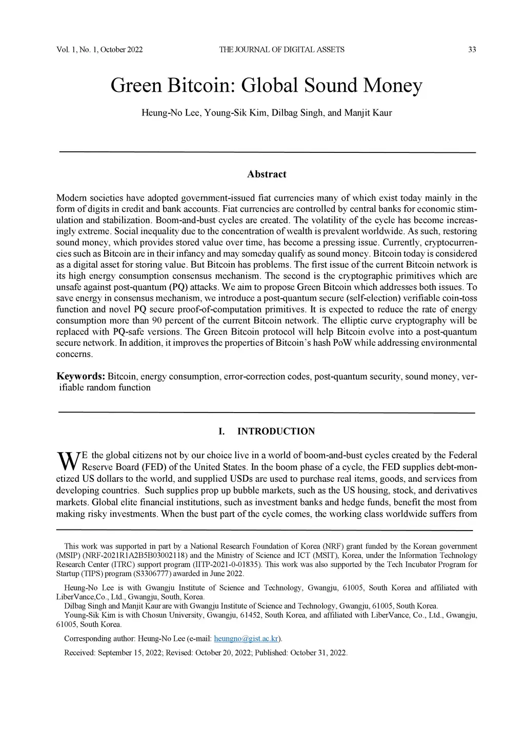 Green Bitcoin: Global Sound Money