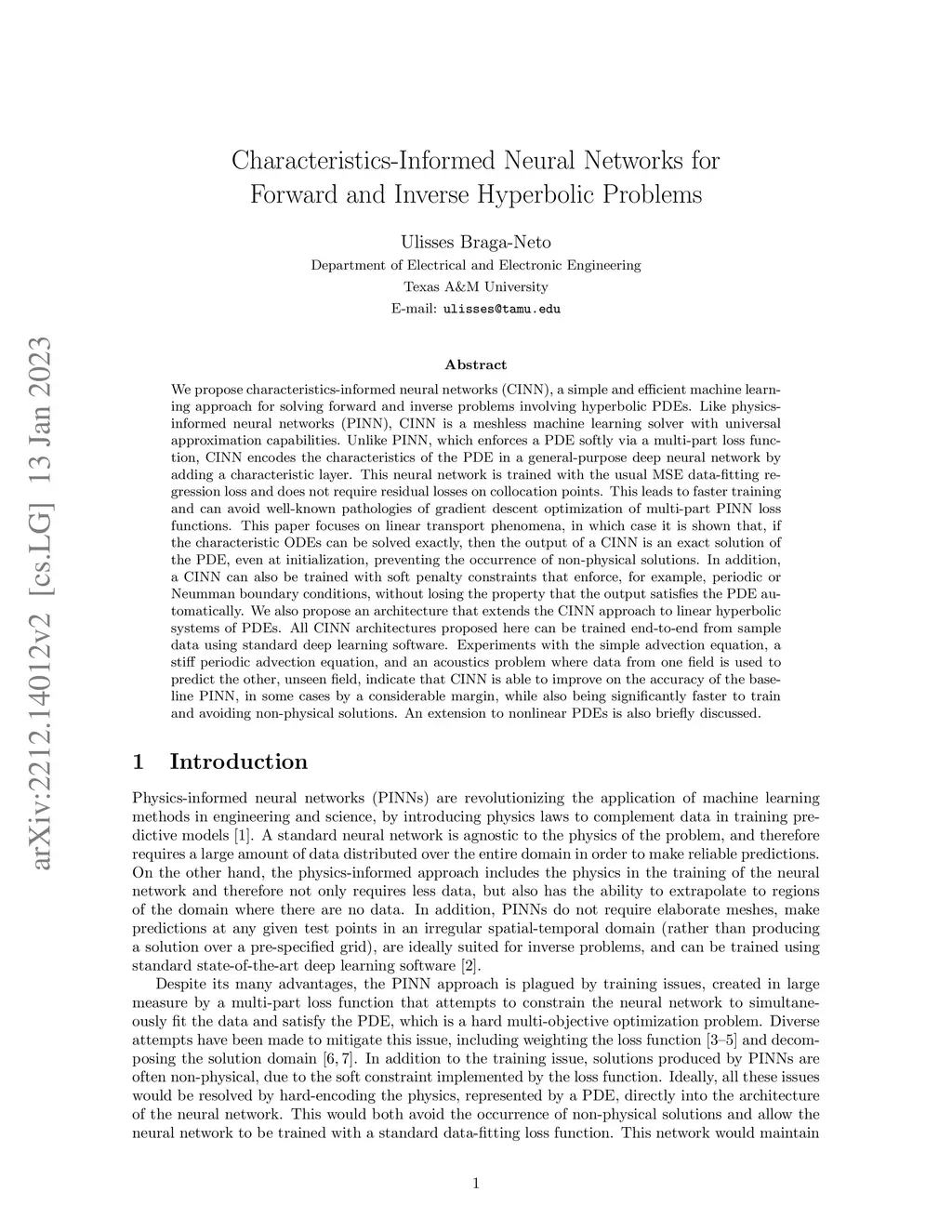 Characteristics-Informed Neural Networks for Forward and Inverse