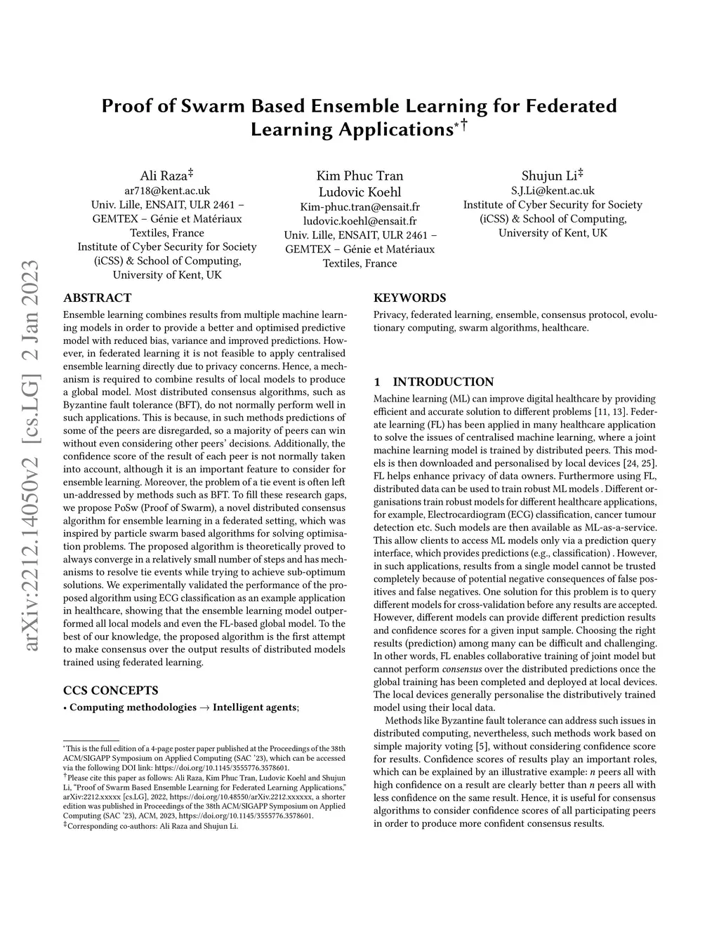 Proof of Swarm Based Ensemble Learning for Federated Learning