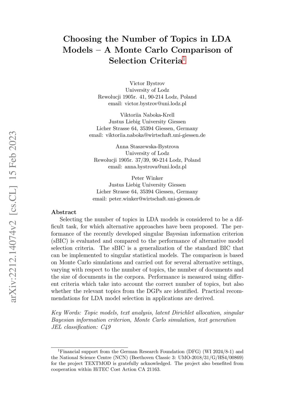 Choosing the Number of Topics in LDA Models -- A Monte Carlo Comparison