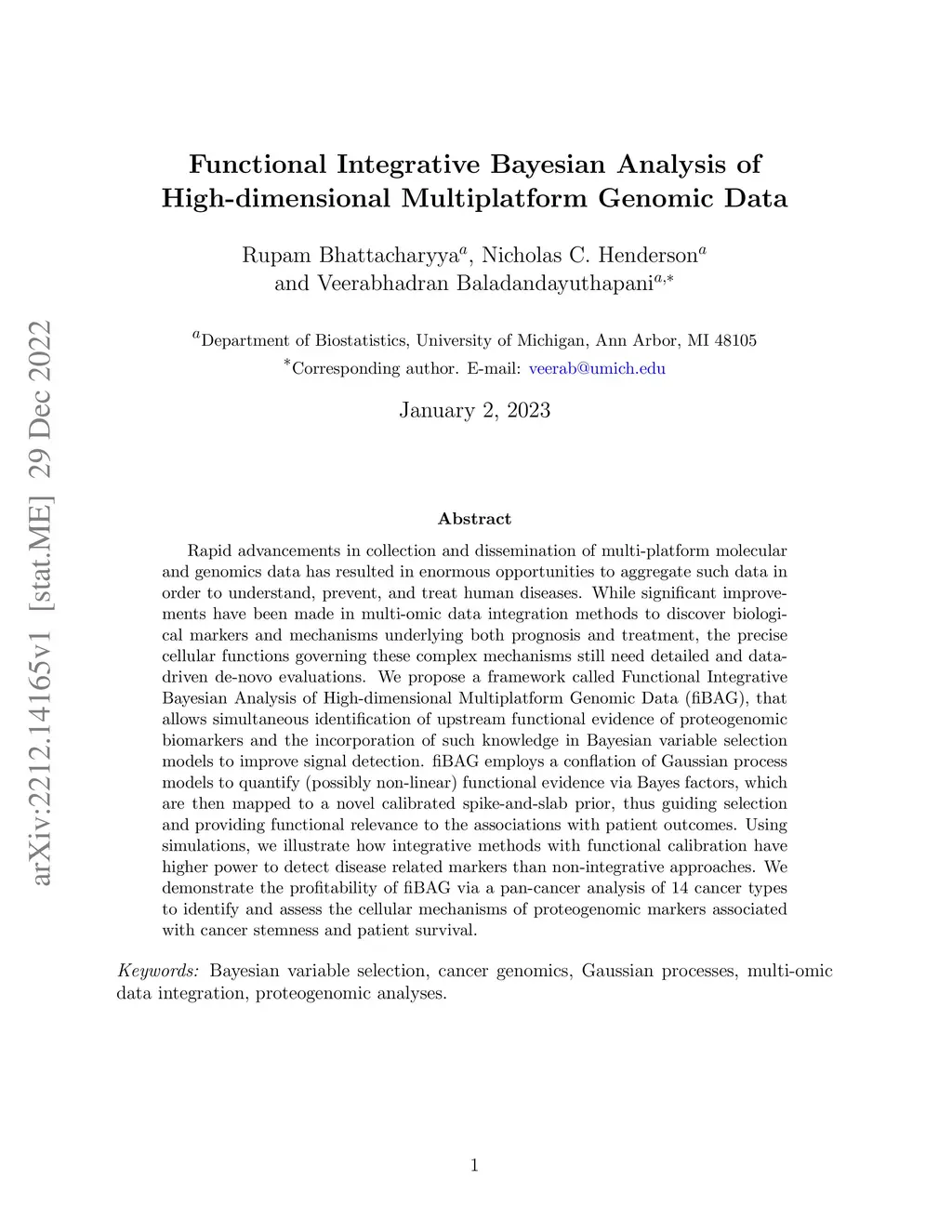 Rapid advancements in collection and dissemination of multi-platform molecular and genomics data has resulted in enormous opportunities to aggregate such data in order to understand, prevent, and treat human diseases. While significant improvements have been made in multi-omic data integration methods to discover biological markers and mechanisms underlying both prognosis and treatment, the precise cellular functions governing these complex mechanisms still need detailed and data-driven de-novo evaluations. We propose a framework called Functional Integrative Bayesian Analysis of High-dimensional Multiplatform Genomic Data (fiBAG), that allows simultaneous identification of upstream functional evidence of proteogenomic biomarkers and the incorporation of such knowledge in Bayesian variable selection models to improve signal detection. fiBAG employs a conflation of Gaussian process models to quantify (possibly non-linear) functional evidence via Bayes factors, which are then mapped to a novel calibrated spike-and-slab prior, thus guiding selection and providing functional relevance to the associations with patient outcomes. Using simulations, we illustrate how integrative methods with functional calibration have higher power to detect disease related markers than non-integrative approaches. We demonstrate the profitability of fiBAG via a pan-cancer analysis of 14 cancer types to identify and assess the cellular mechanisms of proteogenomic markers associated with cancer stemness and patient survival.