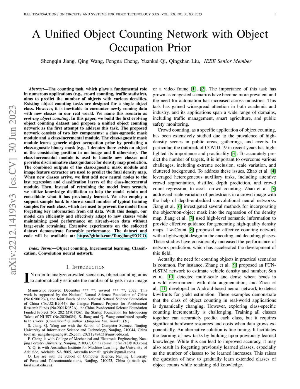 The counting task, which plays a fundamental role in numerous applications (e.g., crowd counting, traffic statistics), aims to predict the number of objects with various densities. Existing object counting tasks are designed for a single object class. However, it is inevitable to encounter newly coming data with new classes in our real world. We name this scenario as \textit{evolving object counting}. In this paper, we build the first evolving object counting dataset and propose a unified object counting network as the first attempt to address this task. The proposed model consists of two key components: a class-agnostic mask module and a class-incremental module. The class-agnostic mask module learns generic object occupation prior via predicting a class-agnostic binary mask (e.g., 1 denotes there exists an object at the considering position in an image and 0 otherwise). The class-incremental module is used to handle new coming classes and provides discriminative class guidance for density map prediction. The combined outputs of class-agnostic mask module and image feature extractor are used to predict the final density map. When new classes come, we first add new neural nodes into the last regression and classification layers of class-incremental module. Then, instead of retraining the model from scratch, we utilize knowledge distillation to help the model remember what have already learned about previous object classes. We also employ a support sample bank to store a small number of typical training samples of each class, which are used to prevent the model from forgetting key information of old data. With this design, our model can efficiently and effectively adapt to new coming classes while keeping good performance on already seen data without large-scale retraining. Extensive experiments on the collected dataset demonstrate the favorable performance.