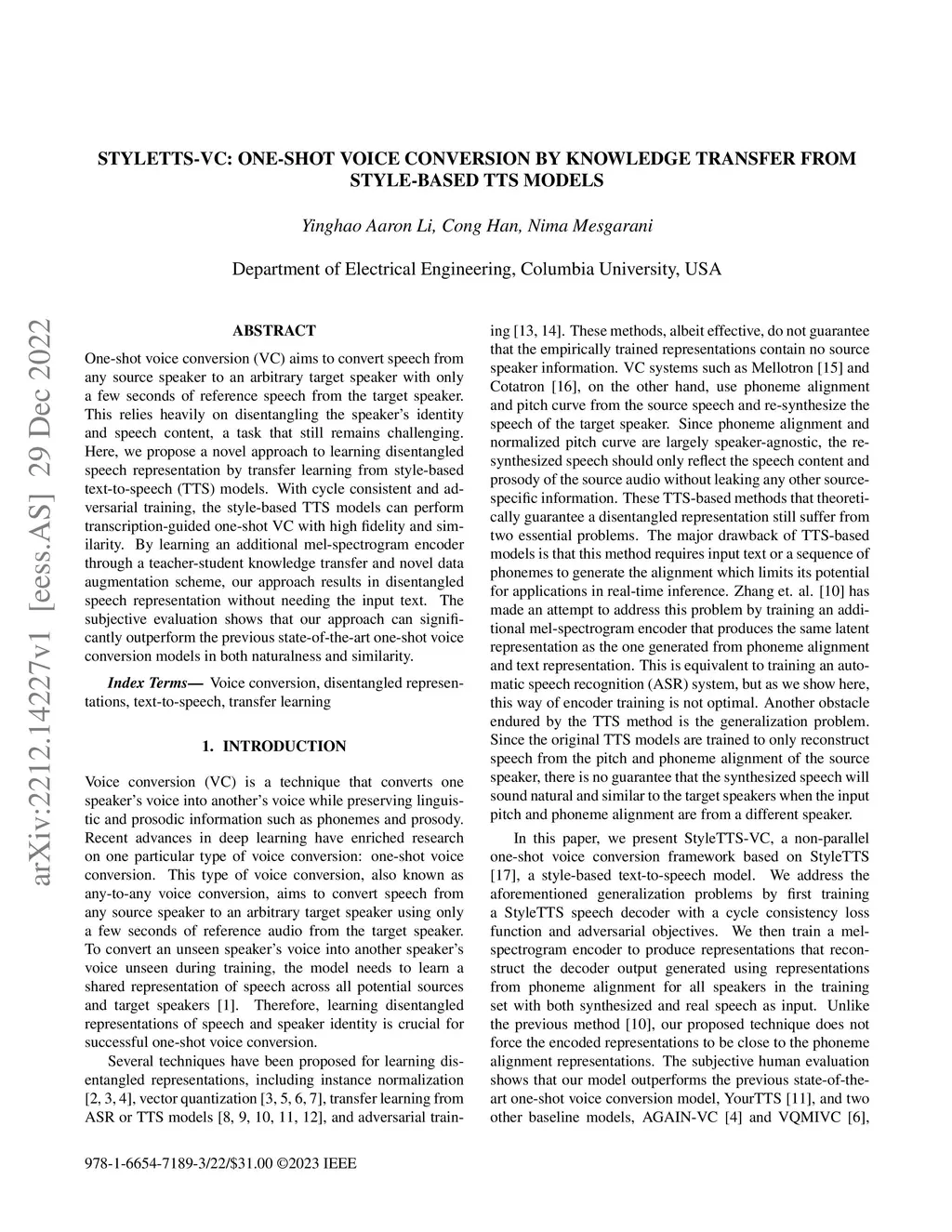 StyleTTS-VC: One-Shot Voice Conversion by Knowledge Transfer from