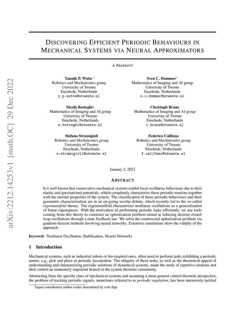It is well known that conservative mechanical systems exhibit local oscillatory behaviours due to their elastic and gravitational potentials, which completely characterise these periodic motions together with the inertial properties of the system. The classification of these periodic behaviours and their geometric characterisation are in an on-going secular debate, which recently led to the so-called eigenmanifold theory. The eigenmanifold characterises nonlinear oscillations as a generalisation of linear eigenspaces. With the motivation of performing periodic tasks efficiently, we use tools coming from this theory to construct an optimization problem aimed at inducing desired closed-loop oscillations through a state feedback law. We solve the constructed optimization problem via gradient-descent methods involving neural networks. Extensive simulations show the validity of the approach.