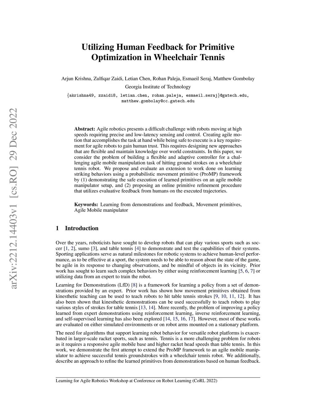 Utilizing Human Feedback for Primitive Optimization in Wheelchair Tennis