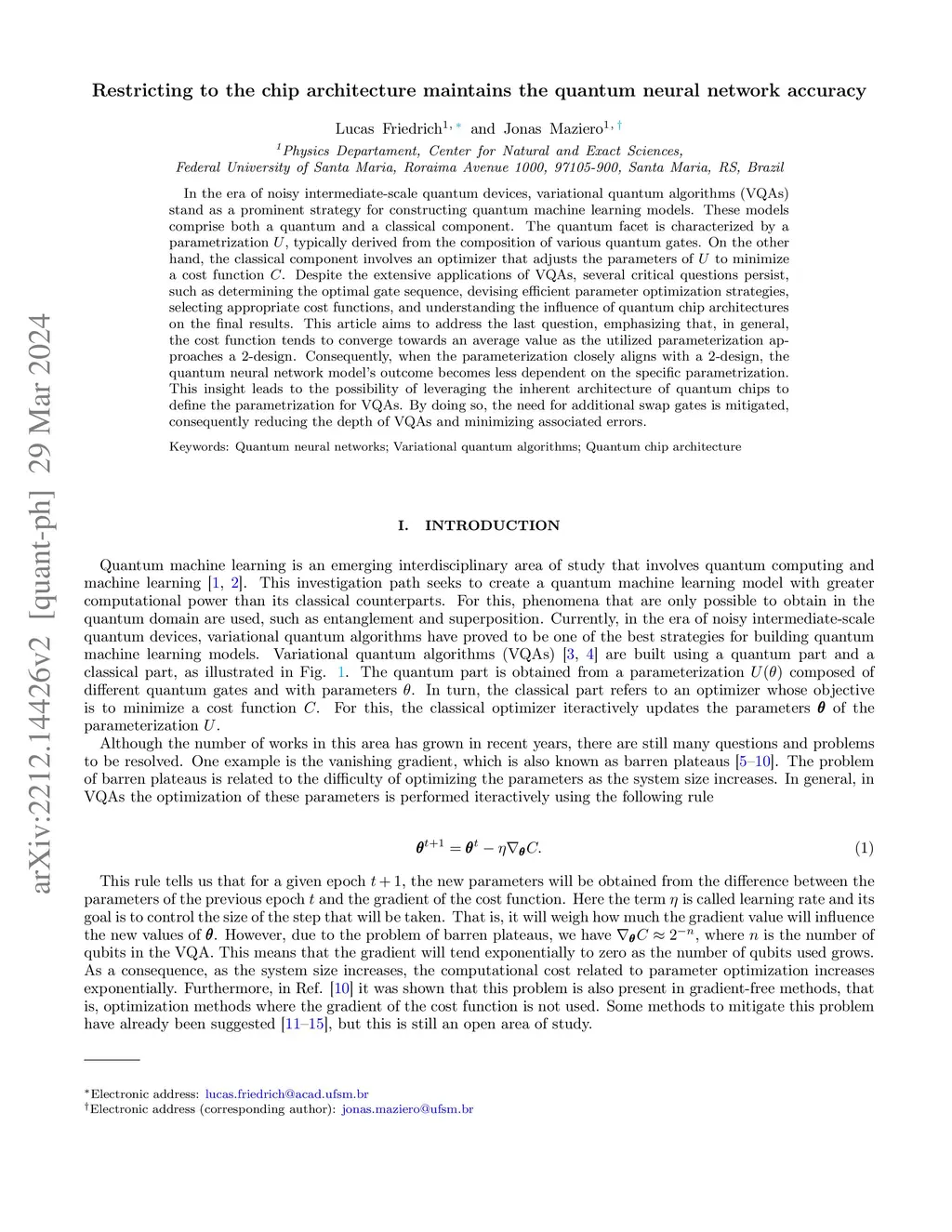 Restricting to the chip architecture maintains the quantum neural