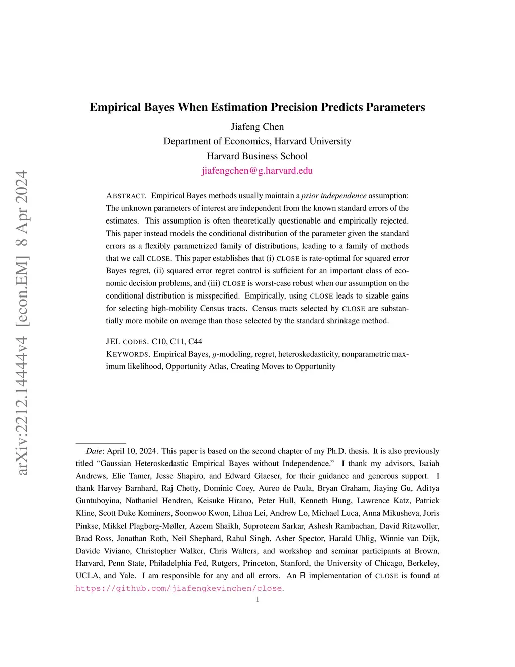 Empirical Bayes methods usually maintain a prior independence assumption: The unknown parameters of interest are independent from the known standard errors of the estimates. This assumption is often theoretically questionable and empirically rejected. This paper instead models the conditional distribution of the parameter given the standard errors as a flexibly parametrized family of distributions, leading to a family of methods that we call CLOSE. This paper establishes that (i) CLOSE is rate-optimal for squared error Bayes regret, (ii) squared error regret control is sufficient for an important class of economic decision problems, and (iii) CLOSE is worst-case robust when our assumption on the conditional distribution is misspecified. Empirically, using CLOSE leads to sizable gains for selecting high-mobility Census tracts. Census tracts selected by CLOSE are substantially more mobile on average than those selected by the standard shrinkage method.