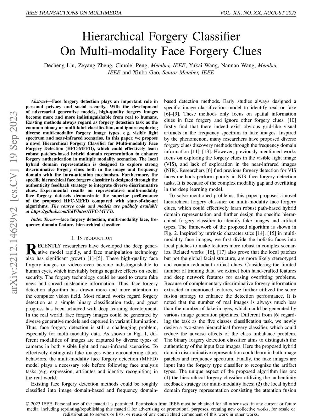 Hierarchical Forgery Classifier On Multi-modality Face Forgery Clues