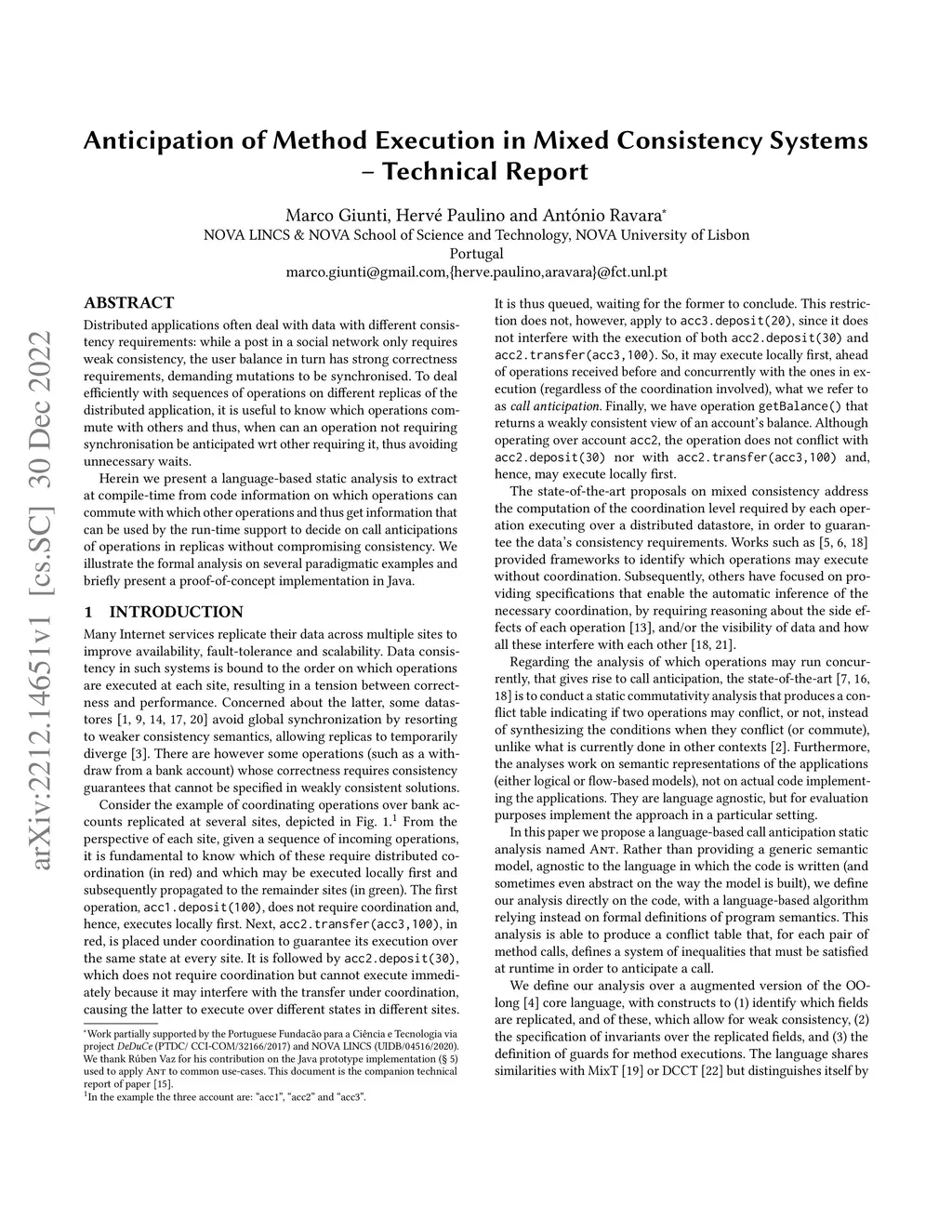Distributed applications often deal with data with different consistency requirements: while a post in a social network only requires weak consistency, the user balance in turn has strong correctness requirements, demanding mutations to be synchronised. To deal efficiently with sequences of operations on different replicas of the distributed application, it is useful to know which operations commute with others and thus, when can an operation not requiring synchronisation be anticipated wrt other requiring it, thus avoiding unnecessary waits. Herein we present a language-based static analysis to extract at compile-time from code information on which operations can commute with which other operations and thus get information that can be used by the run-time support to decide on call anticipations of operations in replicas without compromising consistency. We illustrate the formal analysis on several paradigmatic examples and briefly present a proof-of-concept implementation in Java.