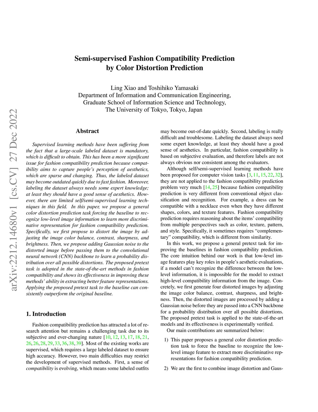 Semi-supervised Fashion Compatibility Prediction by Color Distortion