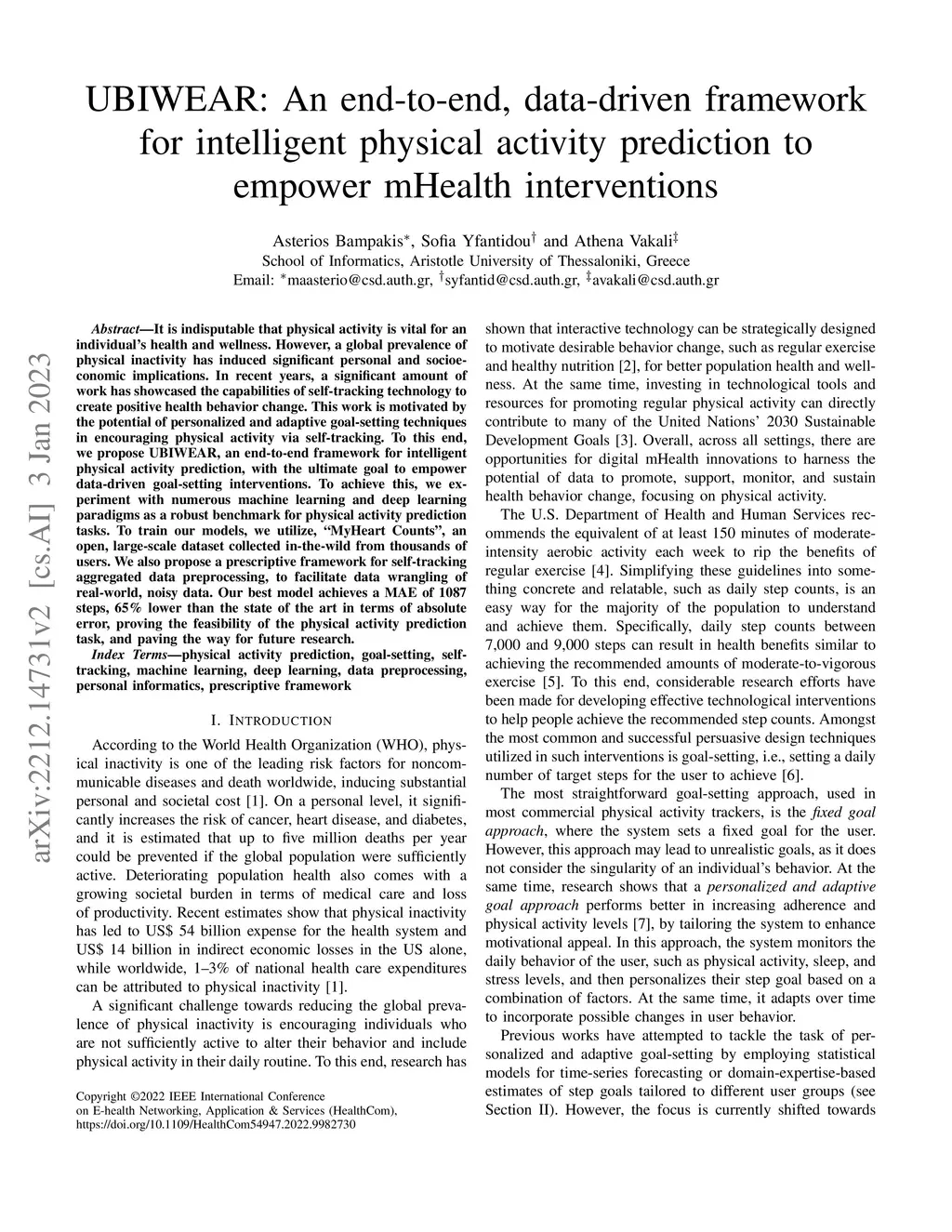 UBIWEAR: An end-to-end, data-driven framework for intelligent physical