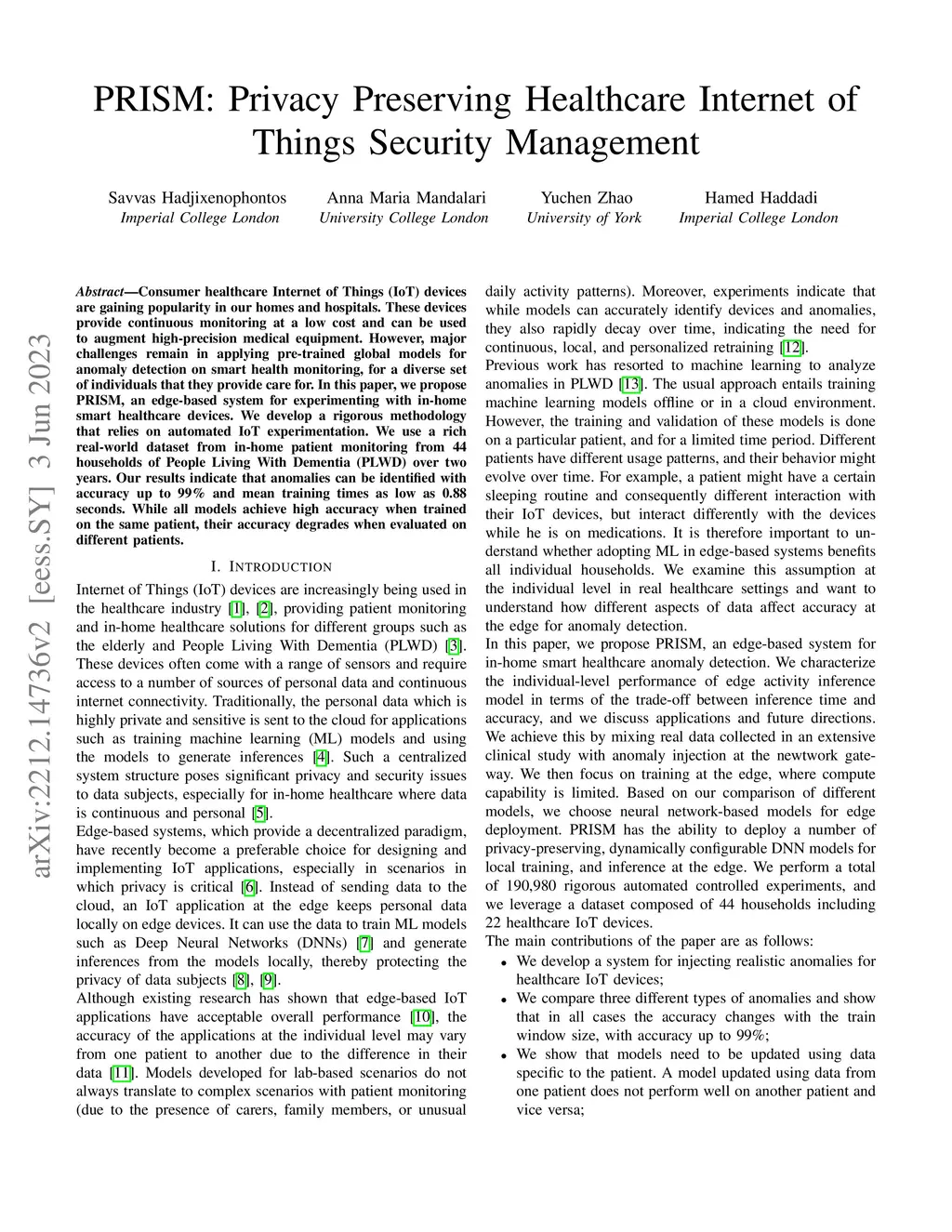 PRISM: Privacy Preserving Healthcare Internet of Things Security