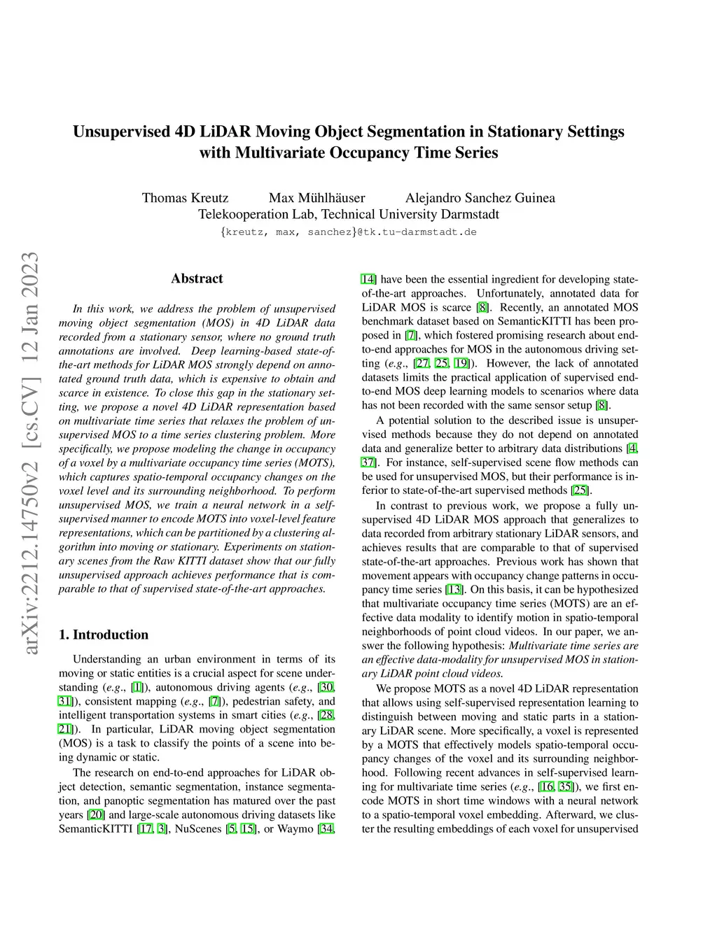 Unsupervised 4D LiDAR Moving Object Segmentation in Stationary Settings