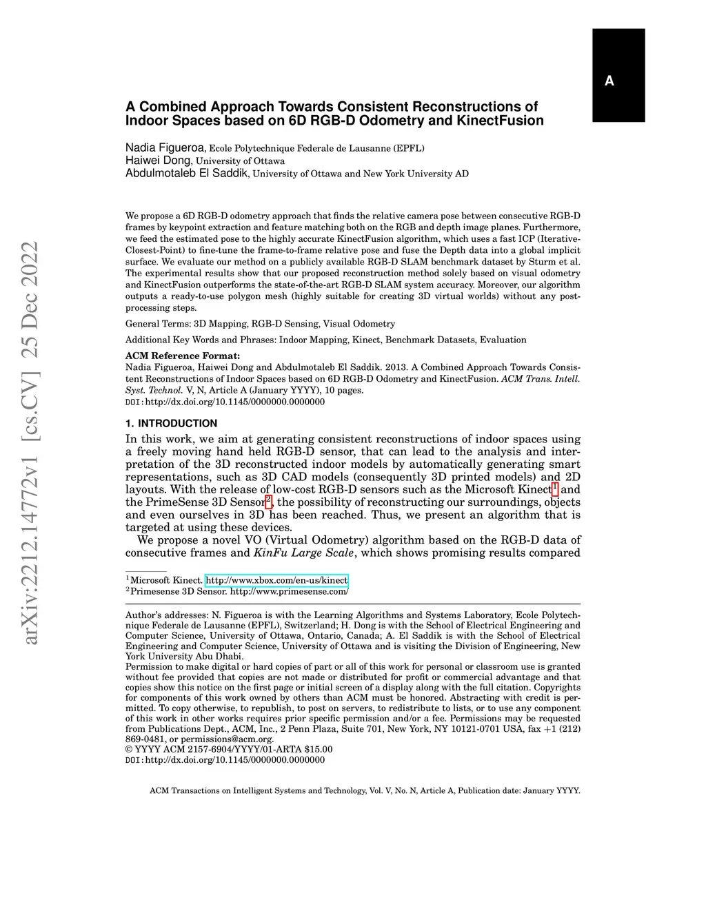 Based on 6D RGB-D Odometry and KinectFusion