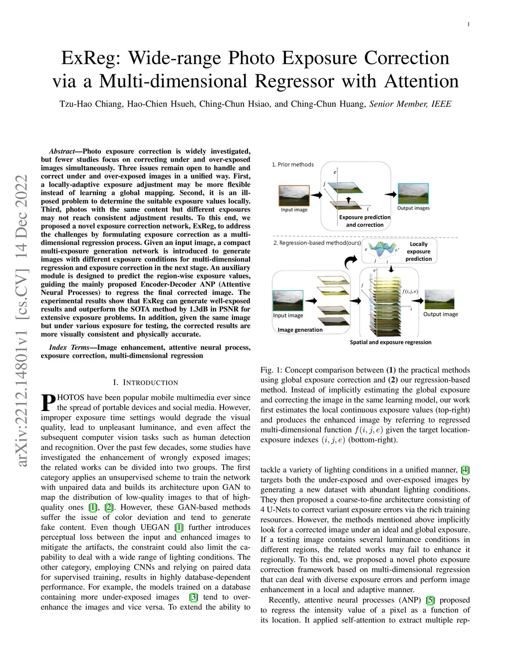 ExReg: Wide-range Photo Exposure Correction via a Multi-dimensional Regressor with Attention