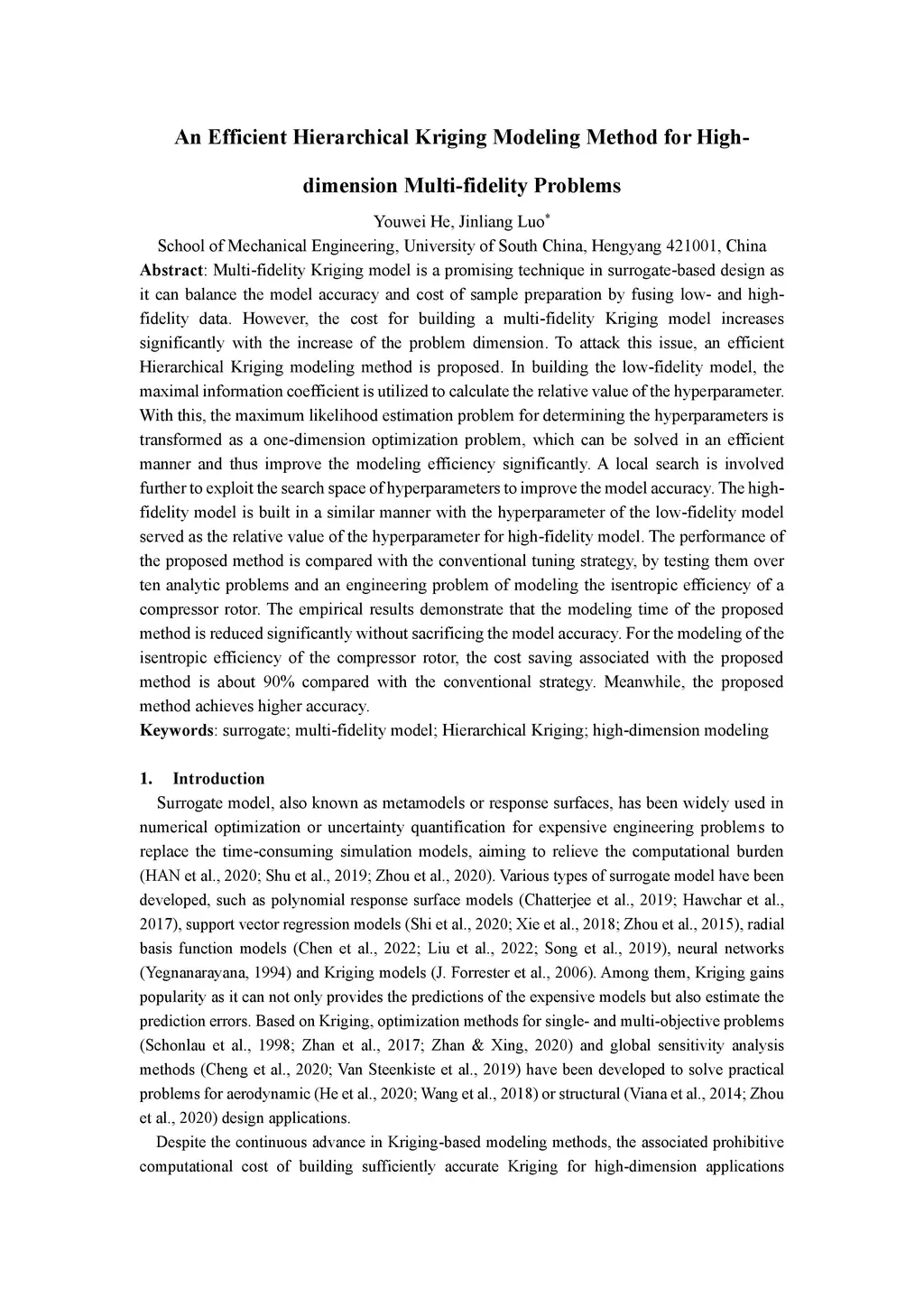 An Efficient Hierarchical Kriging Modeling Method for High-dimension