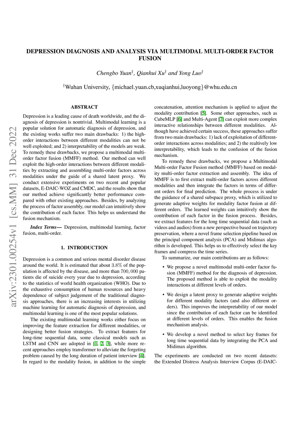 Depression Diagnosis and Analysis via Multimodal Multi-order Factor