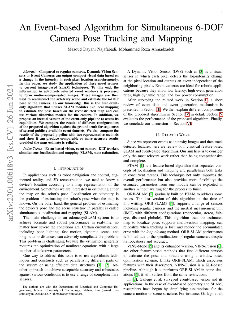 An Event-based Algorithm for Simultaneous 6-DOF Camera Pose Tracking and Mapping