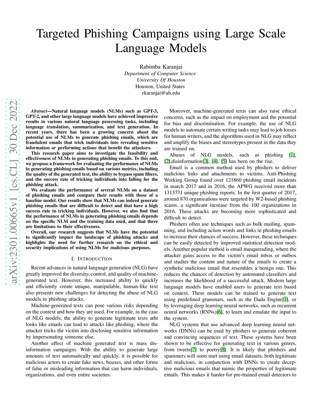 Targeted Phishing Campaigns using Large Scale Language Models