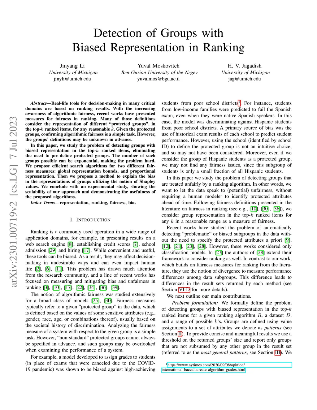 Detection of Groups with Biased Representation in Ranking