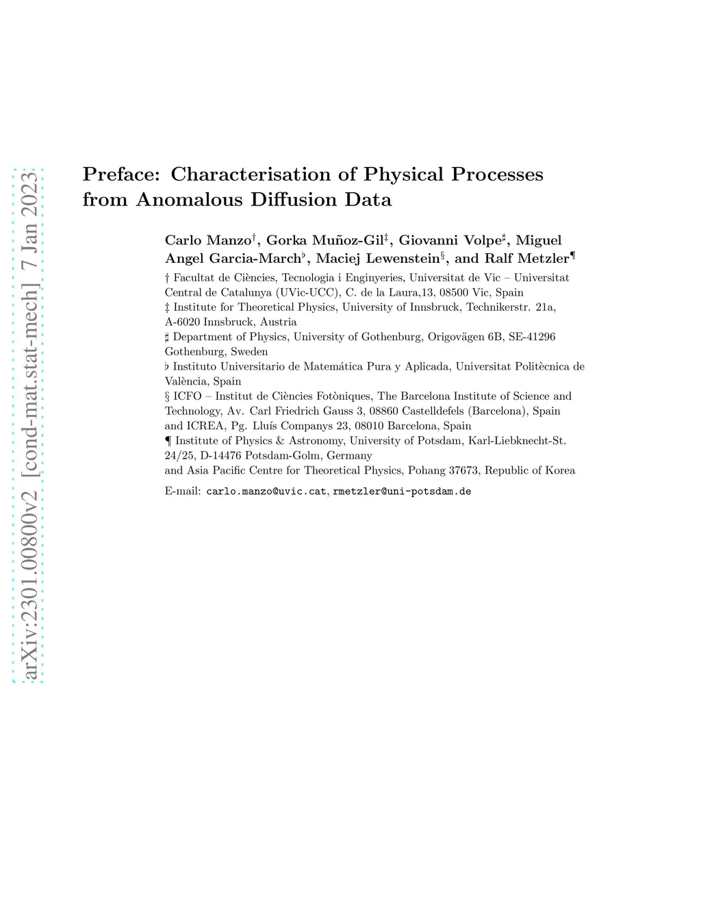 Preface: Characterisation of Physical Processes from Anomalous Diffusion