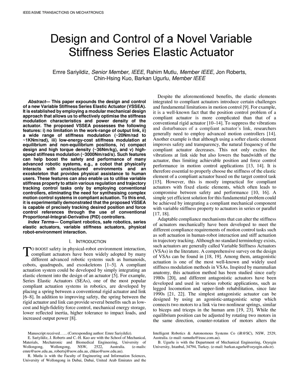 Design and Control of a Novel Variable Stiffness Series Elastic Actuator