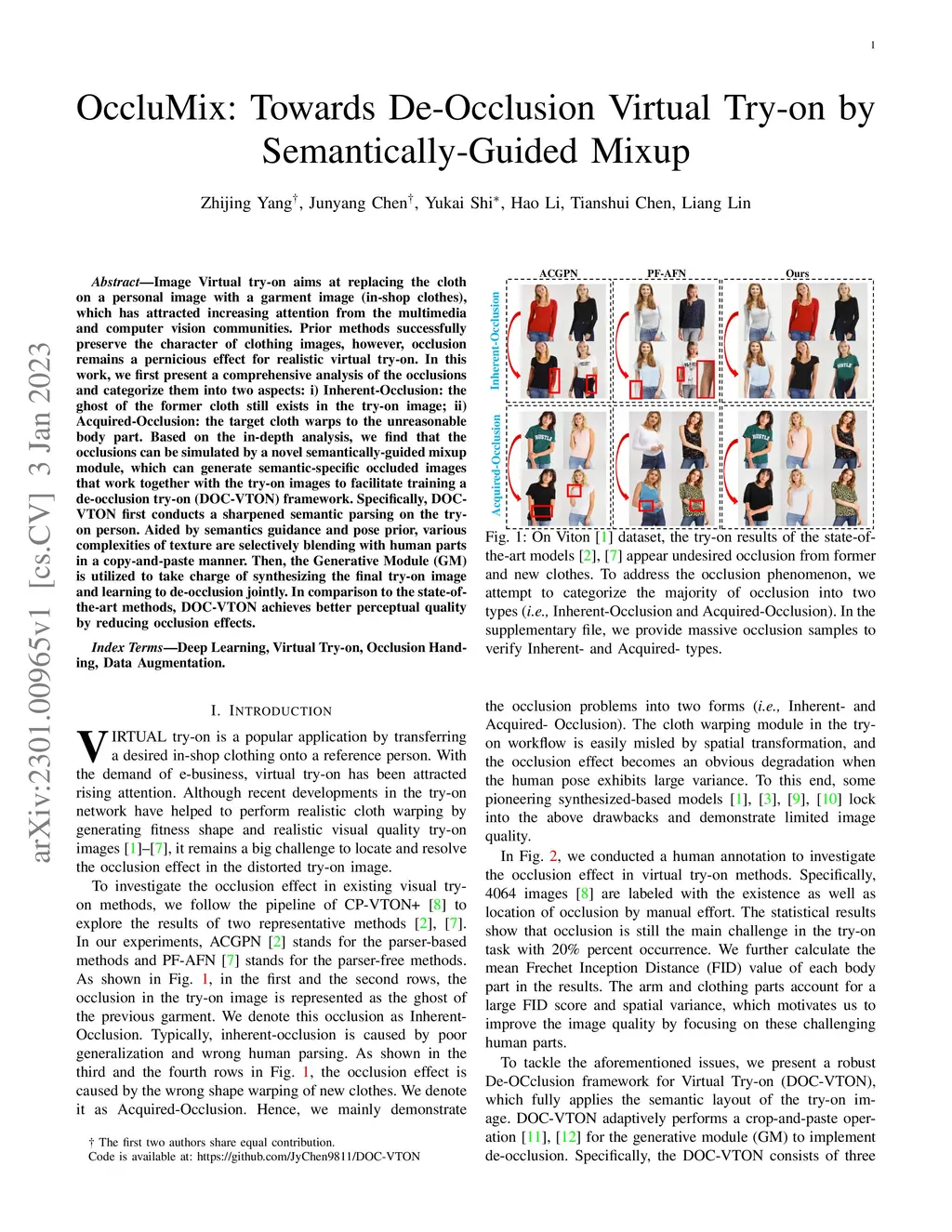 OccluMix: Towards De-Occlusion Virtual Try-on by Semantically-Guided