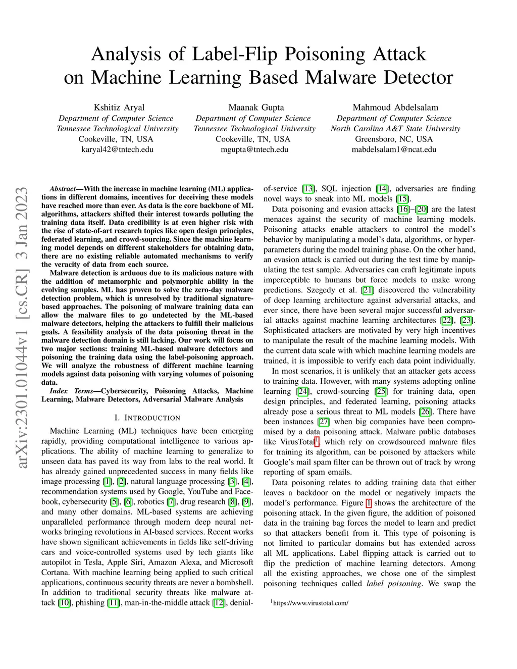 With the increase in machine learning (ML) applications in different domains, incentives for deceiving these models have reached more than ever. As data is the core backbone of ML algorithms, attackers shifted their interest toward polluting the training data. Data credibility is at even higher risk with the rise of state-of-art research topics like open design principles, federated learning, and crowd-sourcing. Since the machine learning model depends on different stakeholders for obtaining data, there are no reliable automated mechanisms to verify the veracity of data from each source. Malware detection is arduous due to its malicious nature with the addition of metamorphic and polymorphic ability in the evolving samples. ML has proven to solve the zero-day malware detection problem, which is unresolved by traditional signature-based approaches. The poisoning of malware training data can allow the malware files to go undetected by the ML-based malware detectors, helping the attackers to fulfill their malicious goals. A feasibility analysis of the data poisoning threat in the malware detection domain is still lacking. Our work will focus on two major sections: training ML-based malware detectors and poisoning the training data using the label-poisoning approach. We will analyze the robustness of different machine learning models against data poisoning with varying volumes of poisoning data.