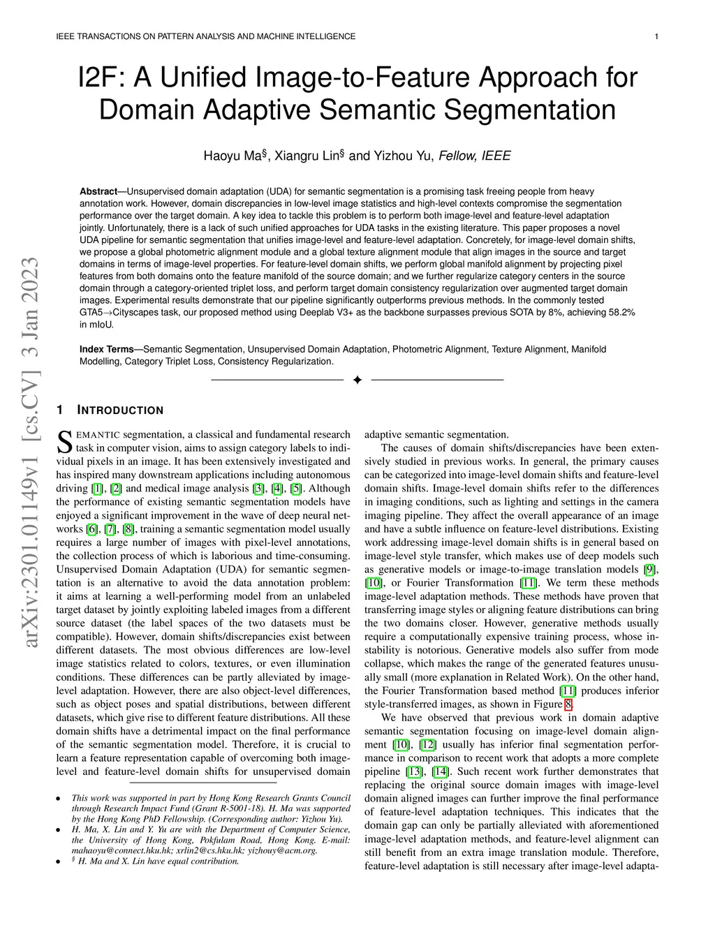 I2F: A Unified Image-to-Feature Approach for Domain Adaptive Semantic