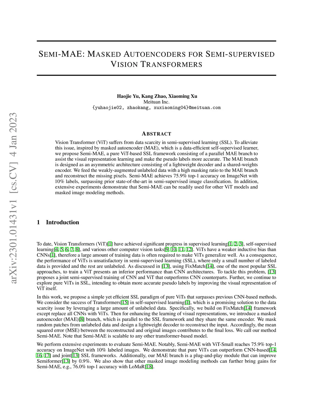 Semi-MAE: Masked Autoencoders for Semi-supervised Vision Transformers