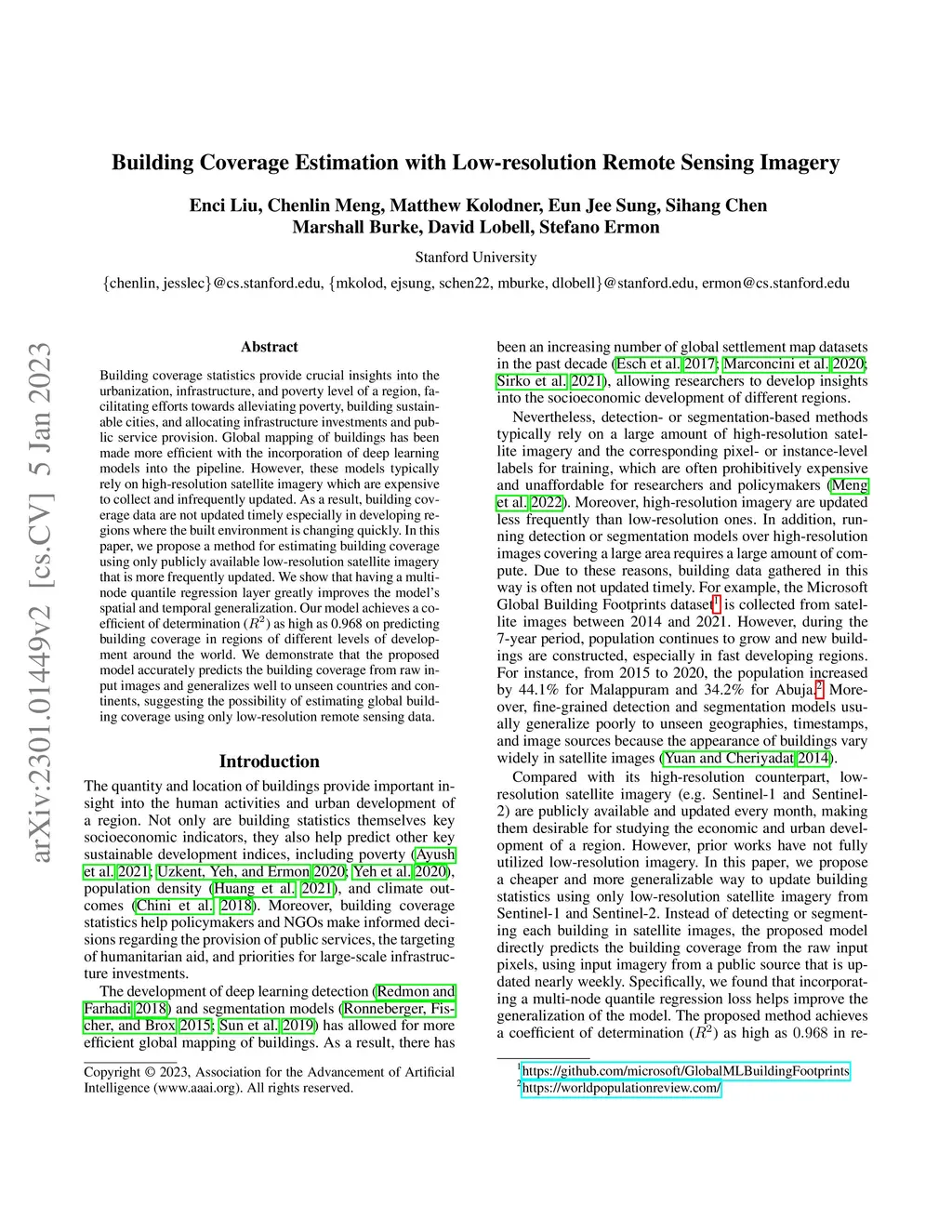 Building Coverage Estimation with Low-resolution Remote Sensing Imagery