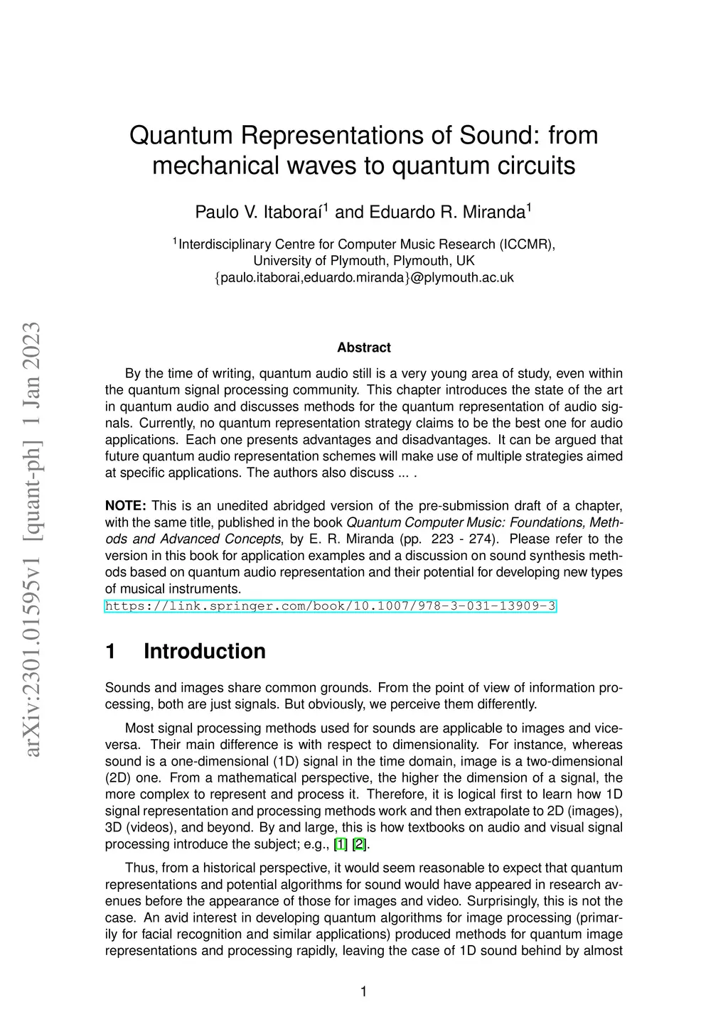 By the time of writing, quantum audio still is a very young area of study, even within the quantum signal processing community. This chapter introduces the state of the art in quantum audio and discusses methods for the quantum representation of audio signals. Currently, no quantum representation strategy claims to be the best one for audio applications. Each one presents advantages and disadvantages. It can be argued that future quantum audio representation schemes will make use of multiple strategies aimed at specific applications. NOTE: This is an unedited abridged version of the pre-submission draft of a chapter, with the same title, published in the book Quantum Computer Music: Foundations, Methods and Advanced Concepts, by E. R. Miranda (pp. 223 - 274). Please refer to the version in this book for application examples and a discussion on sound synthesis methods based on quantum audio representation and their potential for developing new types of musical instruments. https://link.springer.com/book/10.1007/978-3-031-13909-3