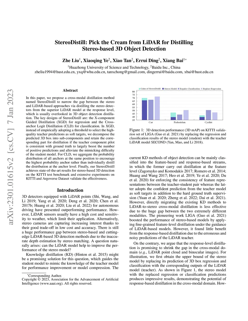 In this paper, we propose a cross-modal distillation method named StereoDistill to narrow the gap between the stereo and LiDAR-based approaches via distilling the stereo detectors from the superior LiDAR model at the response level, which is usually overlooked in 3D object detection distillation. The key designs of StereoDistill are: the X-component Guided Distillation~(XGD) for regression and the Cross-anchor Logit Distillation~(CLD) for classification. In XGD, instead of empirically adopting a threshold to select the high-quality teacher predictions as soft targets, we decompose the predicted 3D box into sub-components and retain the corresponding part for distillation if the teacher component pilot is consistent with ground truth to largely boost the number of positive predictions and alleviate the mimicking difficulty of the student model. For CLD, we aggregate the probability distribution of all anchors at the same position to encourage the highest probability anchor rather than individually distill the distribution at the anchor level. Finally, our StereoDistill achieves state-of-the-art results for stereo-based 3D detection on the KITTI test benchmark and extensive experiments on KITTI and Argoverse Dataset validate the effectiveness.