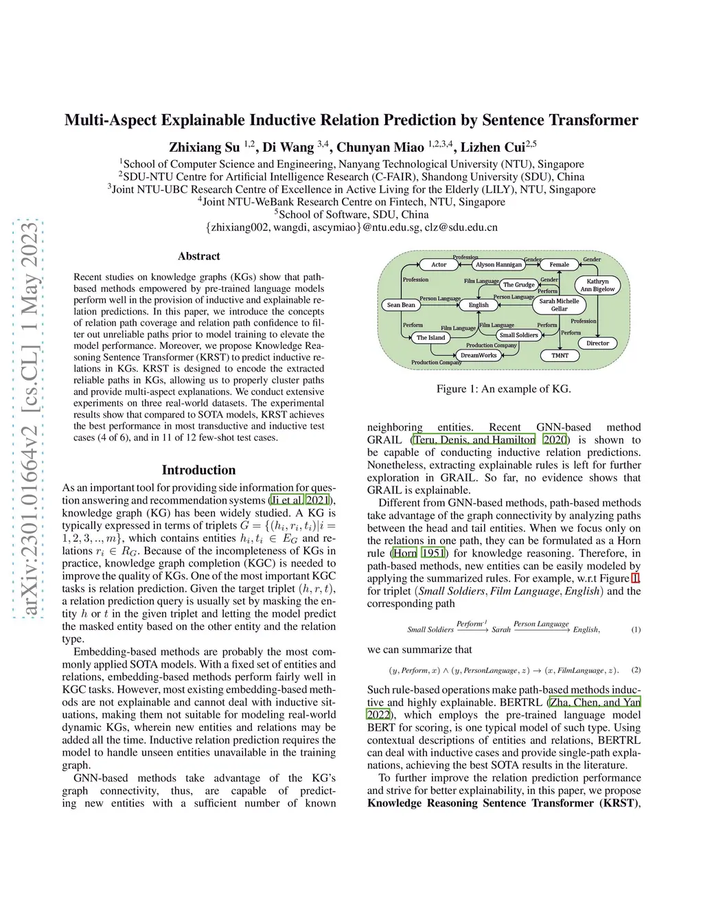 Multi-Aspect Explainable Inductive Relation Prediction by Sentence