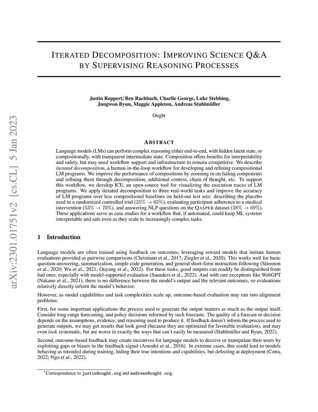 Iterated Decomposition: Improving Science Q&A by Supervising Reasoning