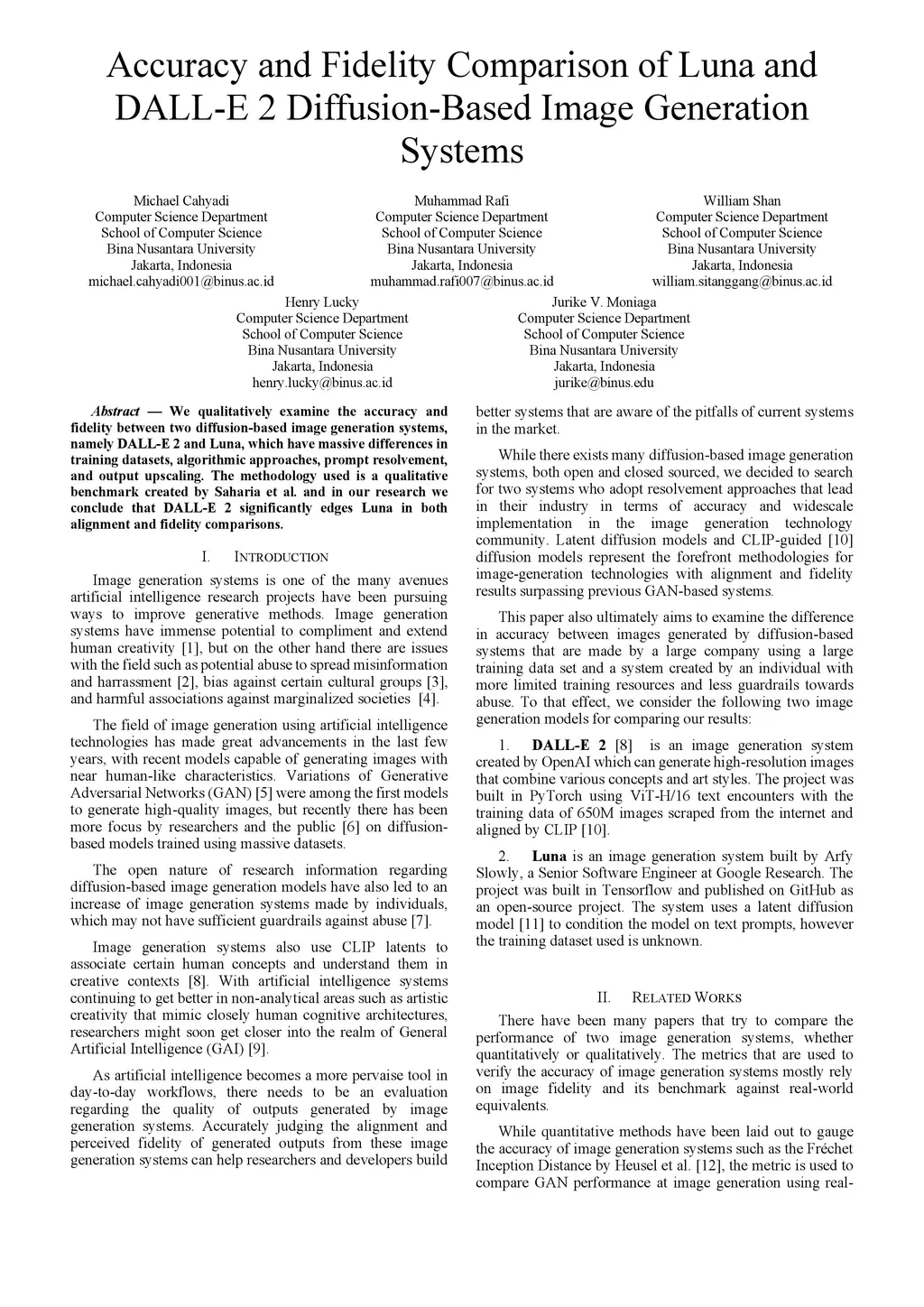 Accuracy and Fidelity Comparison of Luna and DALL-E 2 Diffusion-Based