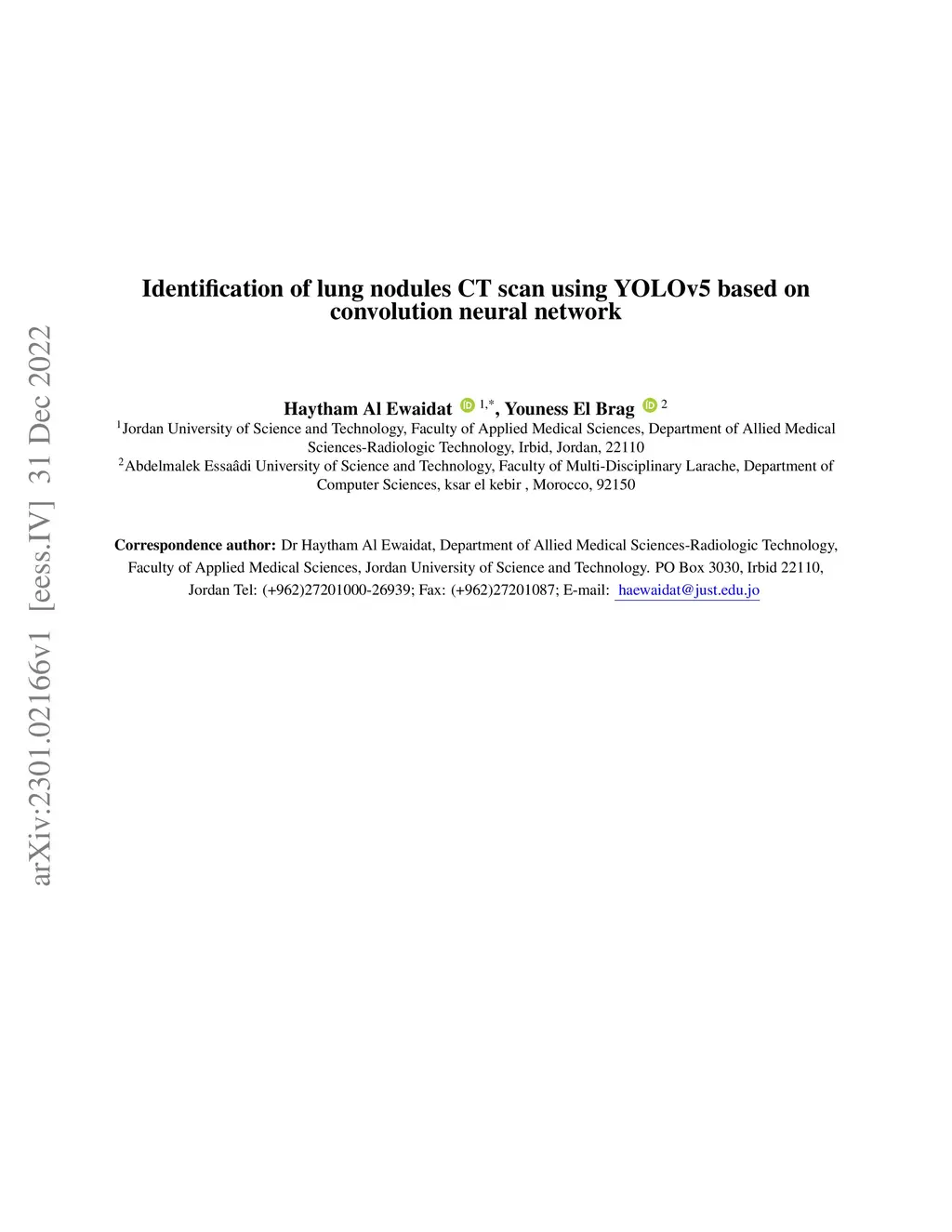 Identification of lung nodules CT scan using YOLOv5 based on convolution