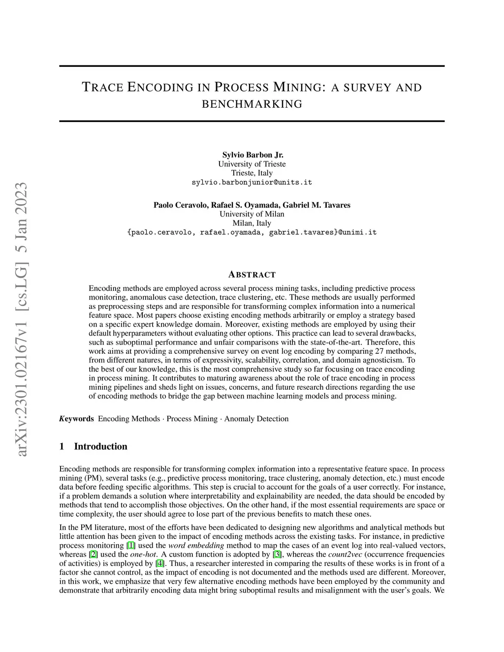 Encoding methods are employed across several process mining tasks, including predictive process monitoring, anomalous case detection, trace clustering, etc. These methods are usually performed as preprocessing steps and are responsible for transforming complex information into a numerical feature space. Most papers choose existing encoding methods arbitrarily or employ a strategy based on a specific expert knowledge domain. Moreover, existing methods are employed by using their default hyperparameters without evaluating other options. This practice can lead to several drawbacks, such as suboptimal performance and unfair comparisons with the state-of-the-art. Therefore, this work aims at providing a comprehensive survey on event log encoding by comparing 27 methods, from different natures, in terms of expressivity, scalability, correlation, and domain agnosticism. To the best of our knowledge, this is the most comprehensive study so far focusing on trace encoding in process mining. It contributes to maturing awareness about the role of trace encoding in process mining pipelines and sheds light on issues, concerns, and future research directions regarding the use of encoding methods to bridge the gap between machine learning models and process mining.