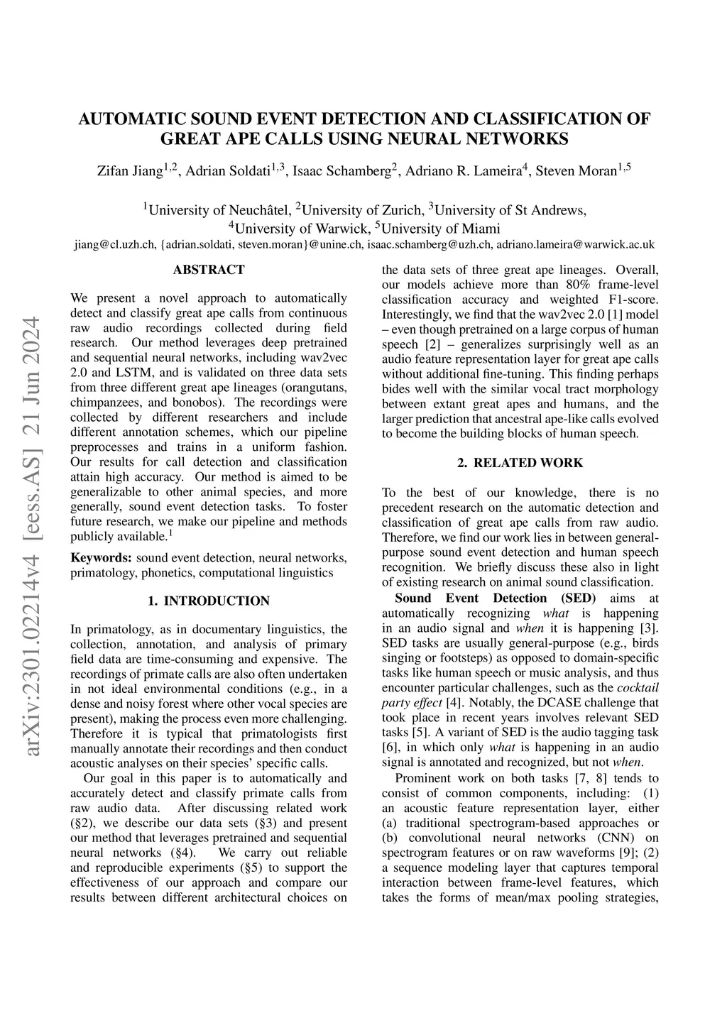 Automatic Sound Event Detection and Classification of Great Ape Calls