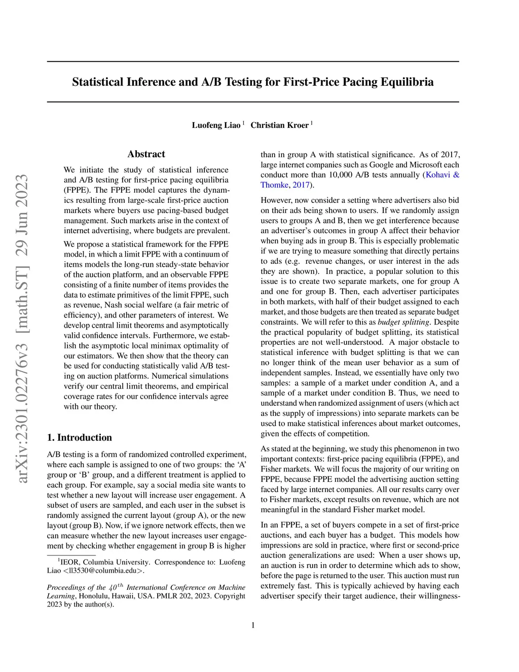 Statistical Inference and A/B Testing for First-Price Pacing Equilibria