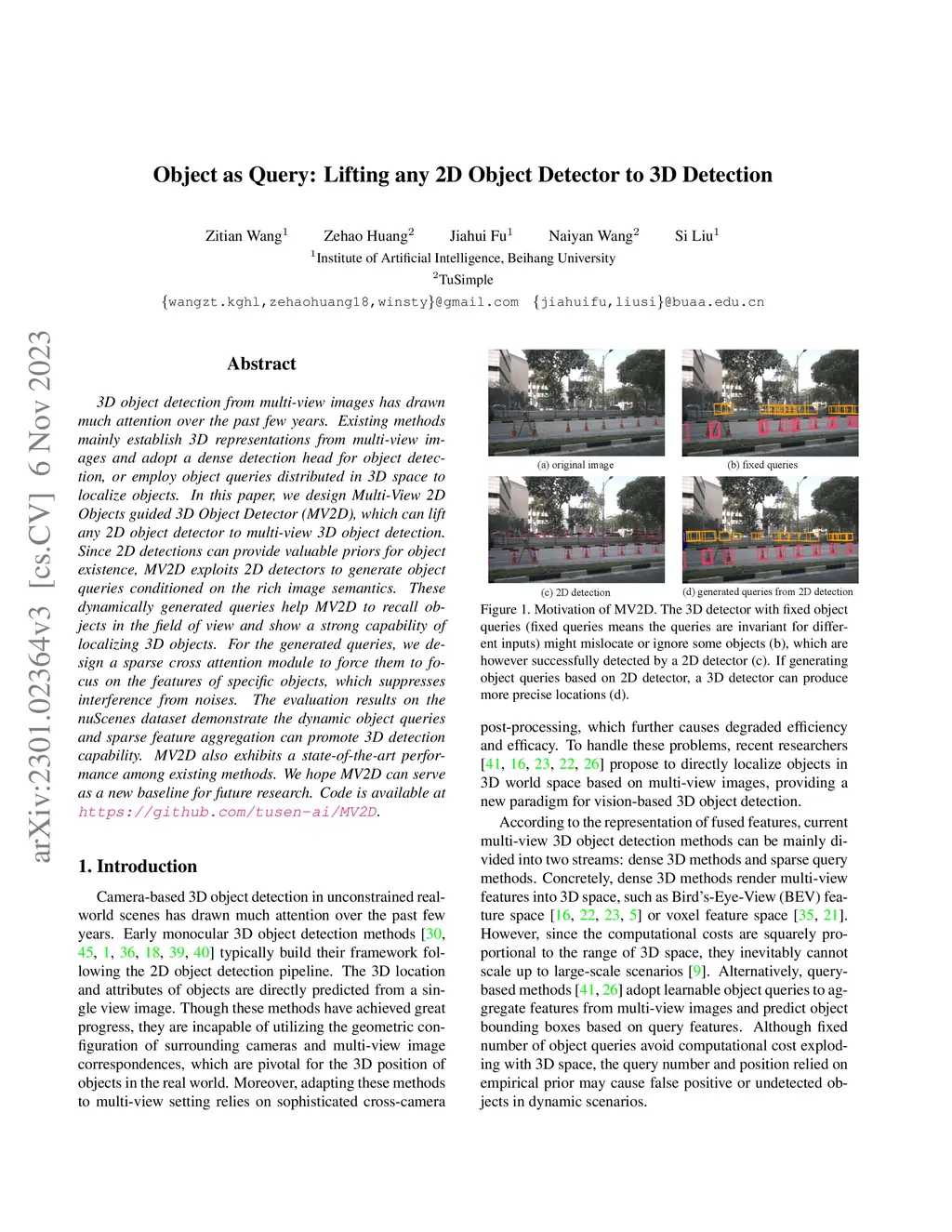 3D object detection from multi-view images has drawn much attention over the past few years. Existing methods mainly establish 3D representations from multi-view images and adopt a dense detection head for object detection, or employ object queries distributed in 3D space to localize objects. In this paper, we design Multi-View 2D Objects guided 3D Object Detector (MV2D), which can lift any 2D object detector to multi-view 3D object detection. Since 2D detections can provide valuable priors for object existence, MV2D exploits 2D detectors to generate object queries conditioned on the rich image semantics. These dynamically generated queries help MV2D to recall objects in the field of view and show a strong capability of localizing 3D objects. For the generated queries, we design a sparse cross attention module to force them to focus on the features of specific objects, which suppresses interference from noises. The evaluation results on the nuScenes dataset demonstrate the dynamic object queries and sparse feature aggregation can promote 3D detection capability. MV2D also exhibits a state-of-the-art performance among existing methods. We hope MV2D can serve as a new baseline for future research. Code is available at \url{https://github.com/tusen-ai/MV2D}.